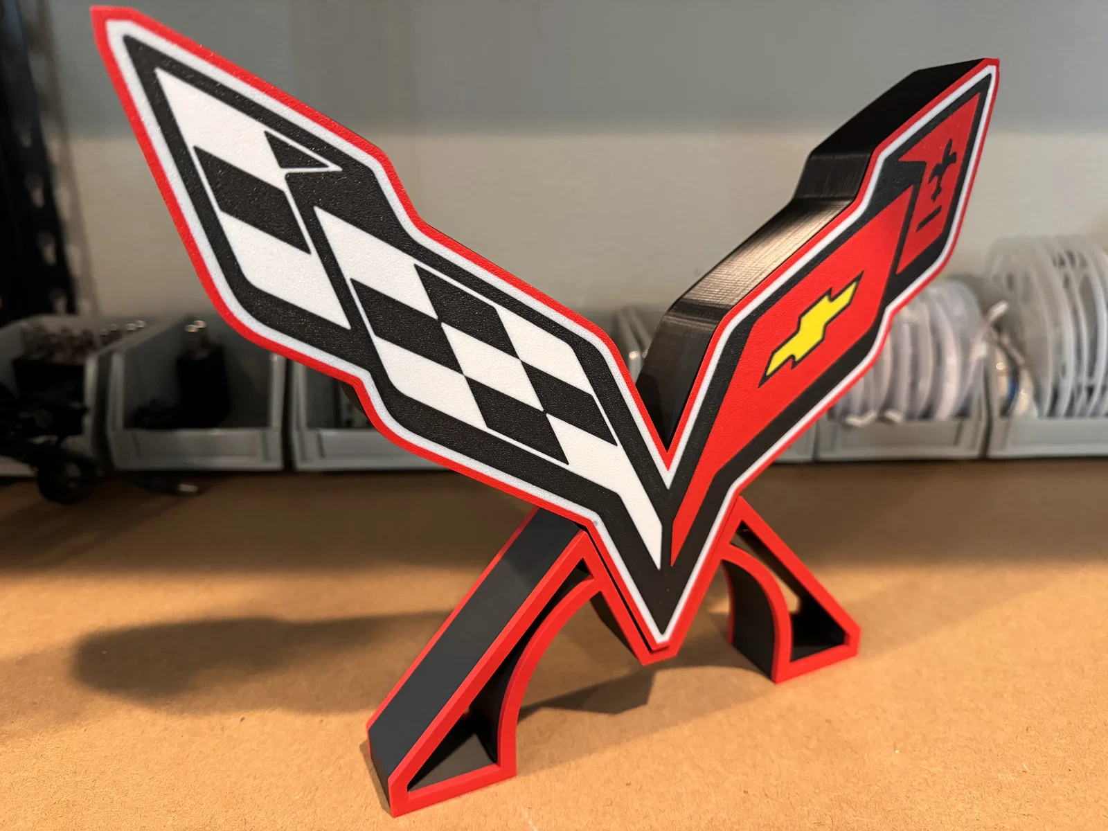 C7 Corvette Lightbox dành cho fan Corvette muốn trưng bày logo vette đời C7. Bản có chân đế, kèm thông số in Bambu P1S/AMS (nozzle .04, Gyroid 10%) và danh sách PLA, phần mềm, LED kit cùng dụng cụ lắp.