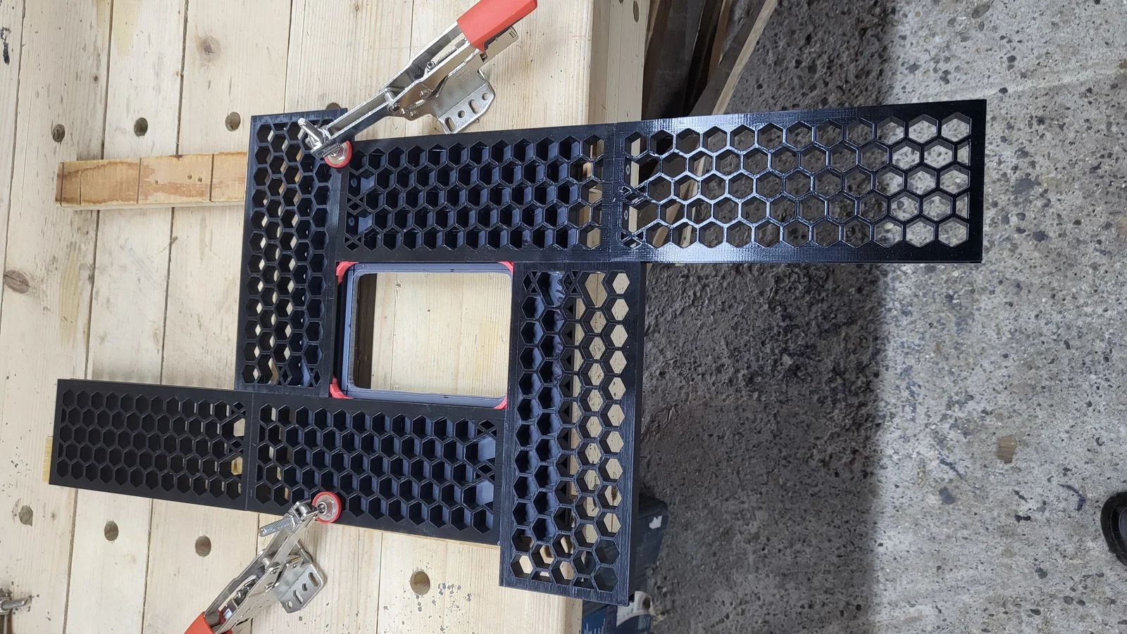 Lưới inlay có thể cố định bằng 5 clips. Mình dán lên tấm plywood mỏng bằng băng keo 2 mặt. Các phần của hộp ghép lại (lắp vách trước rồi gắn cả cụm vào base plate), cuối cùng chấm keo 502 ở các điểm nối. Mình cũng dán hộp lên lưới inlay trong L-Boxx bằng băng keo 2 mặt.