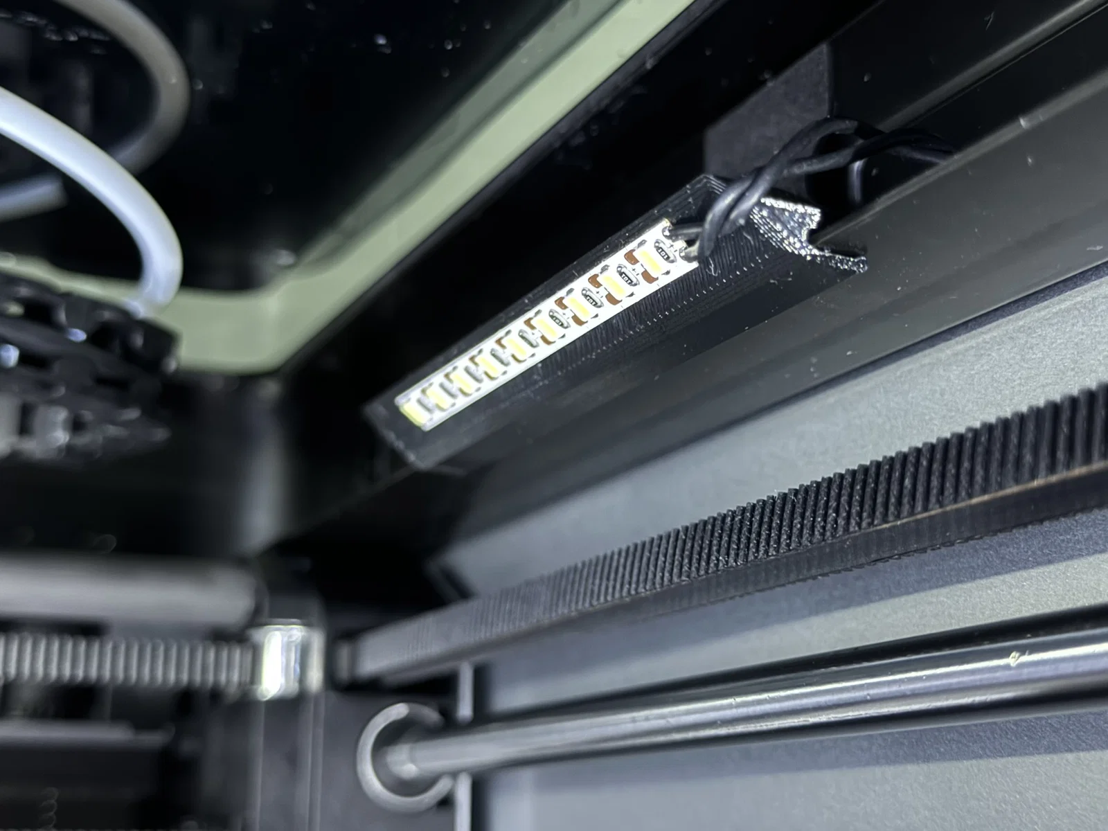 Kẹp đèn LED (light strip clip) giúp dời dải đèn tiến về phía bàn in để chiếu sáng tốt hơn. Dễ in. Đèn được nghiêng lên 40 độ. Kẹp sẽ ép vào tấm sheet metal trong máy in, ngay khu vực gần đầu in. Có thể di chuyển và sắp xếp lại nhưng vẫn bám chắc. Khuyến nghị in bằng PETG. In với mặt gắn LED úp xuống print bed và không cần support.