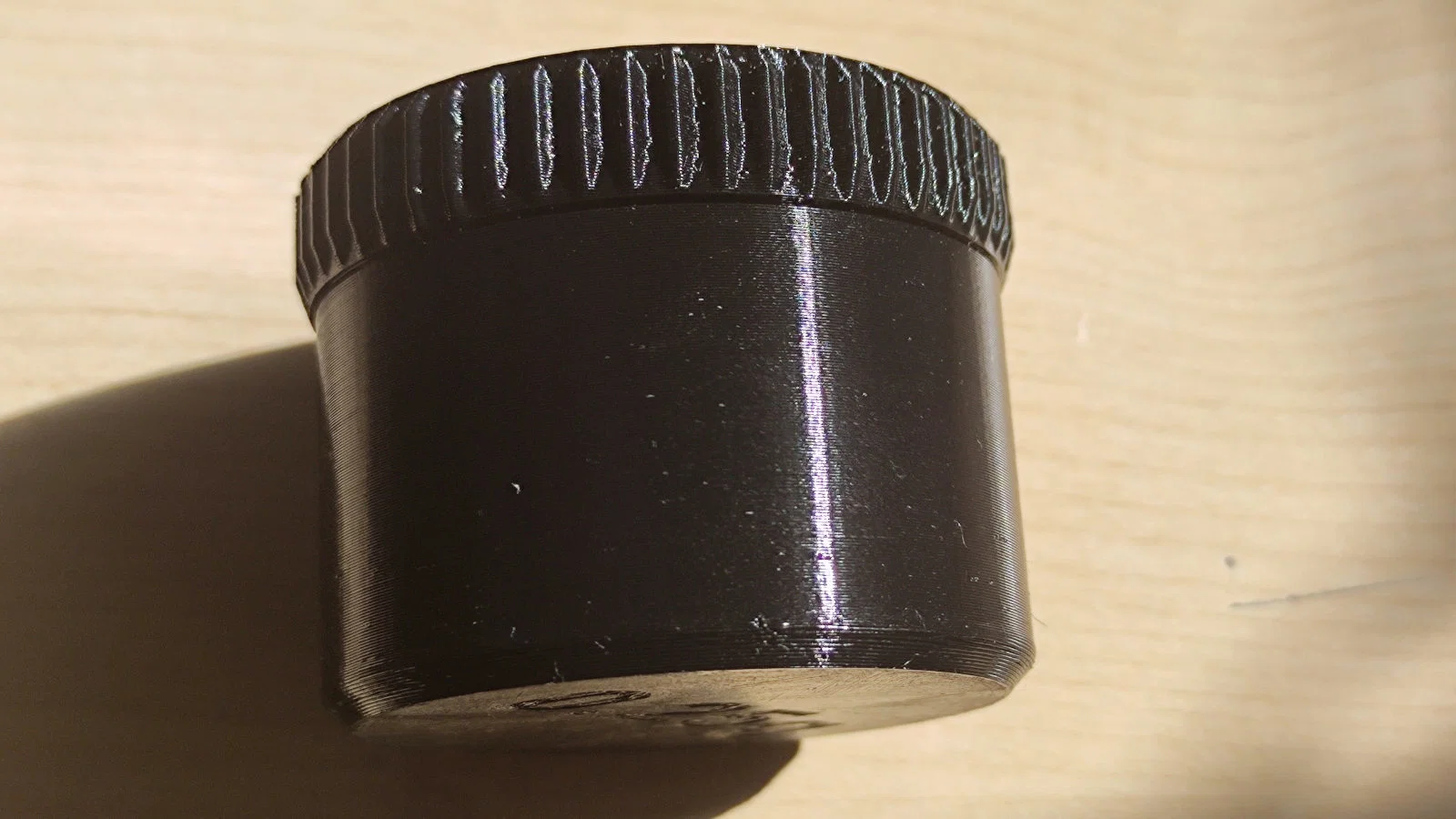Hộp (container) dạng parametric với nắp vặn ren làm bằng OpenSCAD, dùng thư viện BOSL2. Có ren tối ưu cho FDM, tùy chọn đáy vát/bo tròn và khắc chữ trên nắp, đáy hoặc thành hộp, độ kín nước tương đối.
