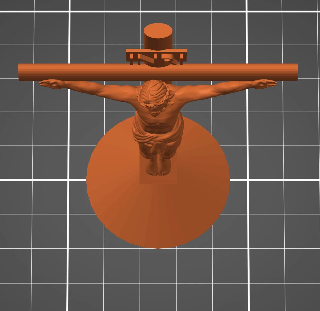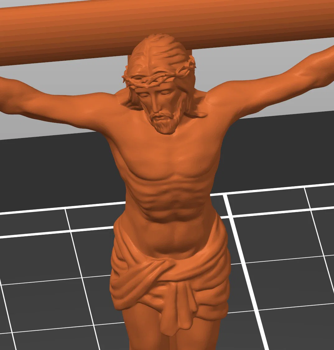 - Hỗ trợ (Support): Do cấu trúc tay dang rộng trên thánh giá, bạn bắt buộc phải sử dụng chế độ hỗ trợ (support) để tránh lỗi in ở các vùng nhô ra.