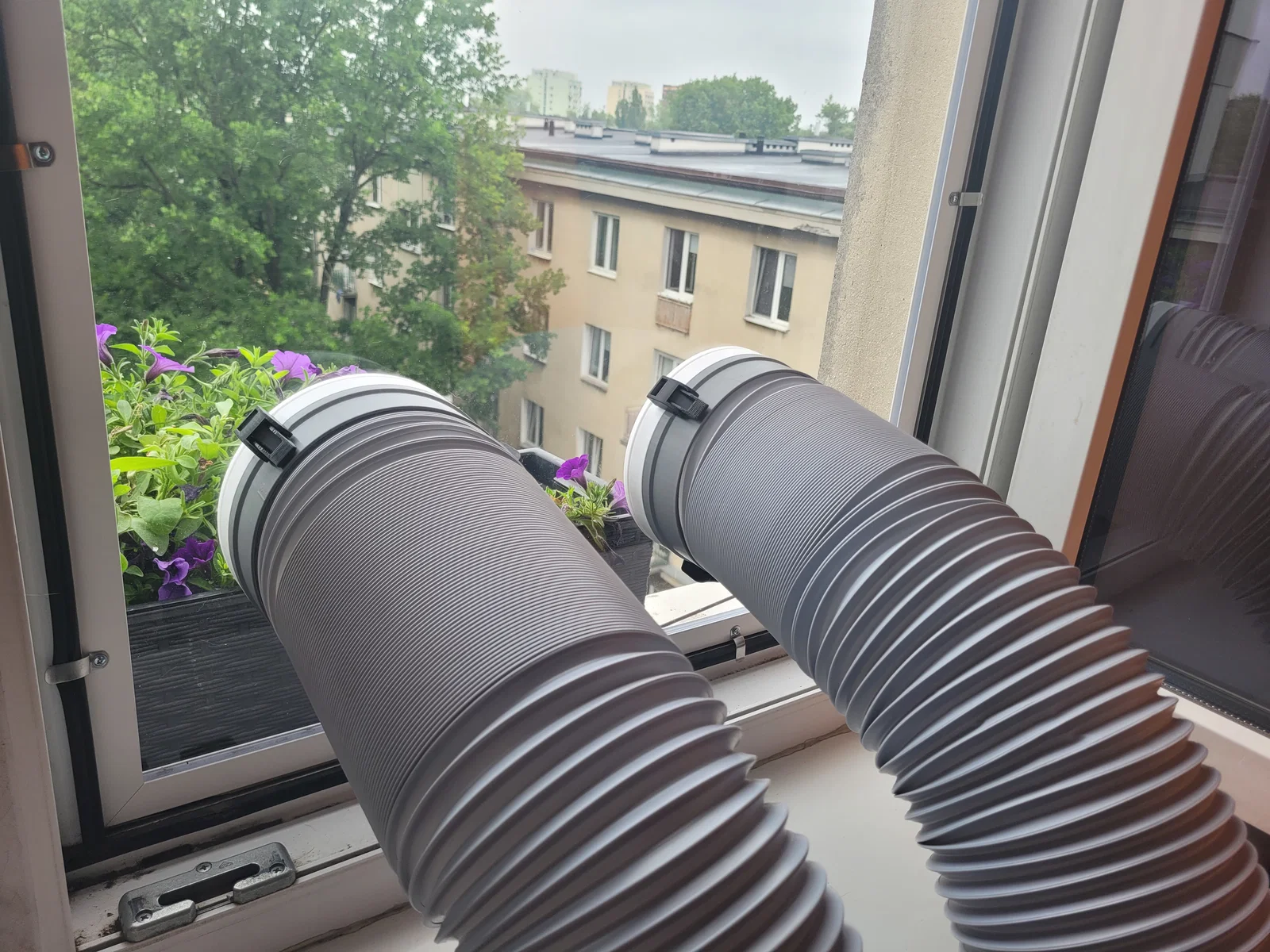 Đặt mua tấm panel gắn cửa sổ cho máy lạnh với lỗ universal 15cm, thay vì phải vặn ống vào ren thì bạn chỉ cần gắn nối trực tiếp, nhanh gọn. Phần gắn phía trong cần chừa khoảng 1,5cm giữa khung (body) của cửa sổ và kính, nếu không bạn sẽ không thể đóng cửa sổ lại.