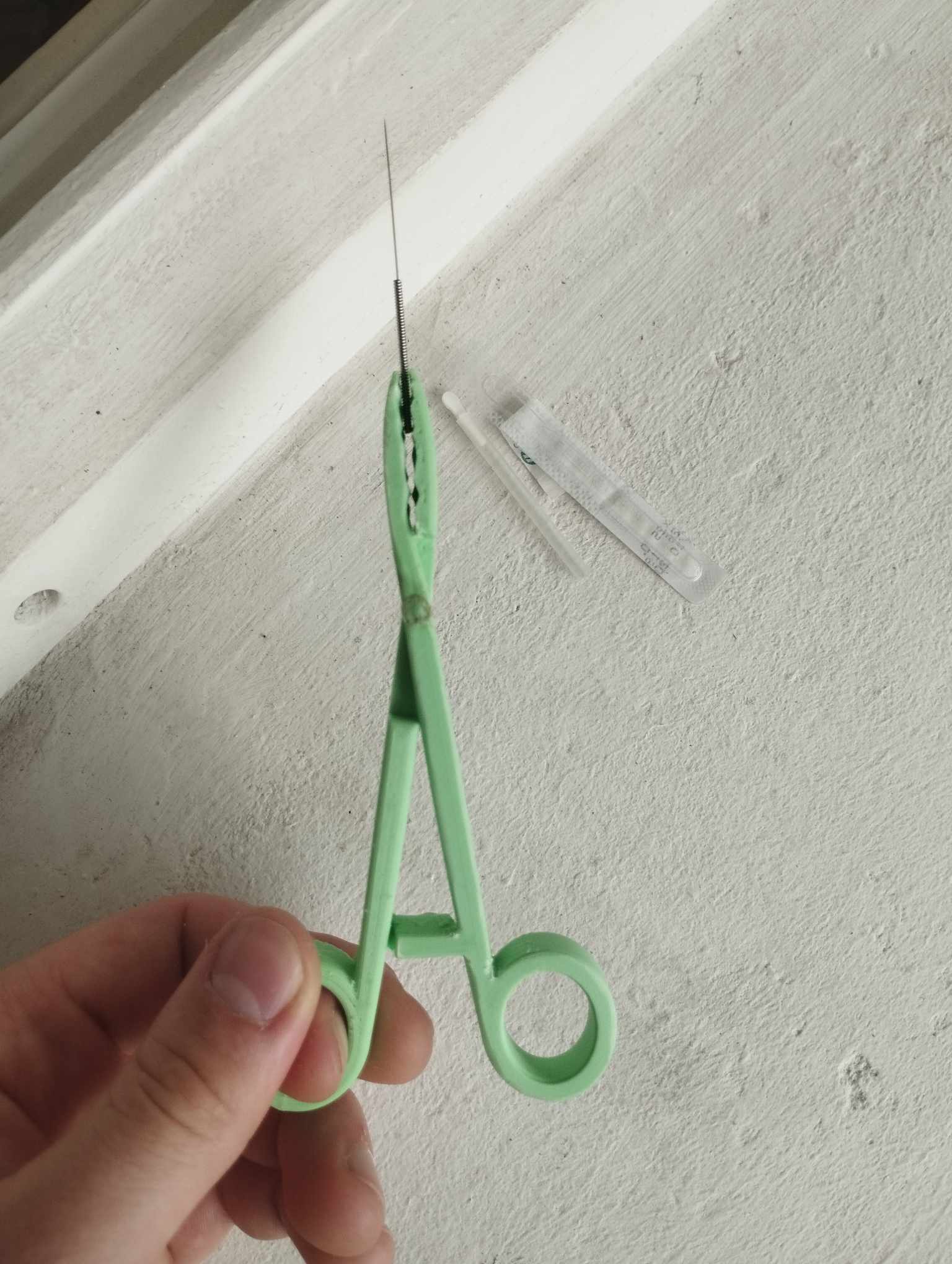 Mẫu Kocher clamp in 3D gồm 2 chi tiết giống nhau và một đoạn filament để làm chốt. Kẹp có cơ cấu khóa giữ cố định, phù hợp để kẹp giữ kim, ống hoặc các vật nhỏ khác.