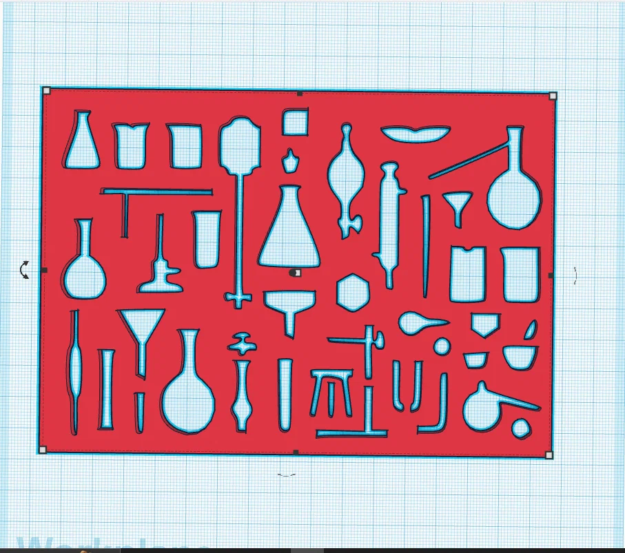 Khuôn vẽ (drawing template) gồm một số dụng cụ thí nghiệm hoá học. Bạn có thể scale theo nhu cầu; kích thước gốc của model là 115x162 mm. In xong nhớ chia sẻ thành phẩm của bạn nha.