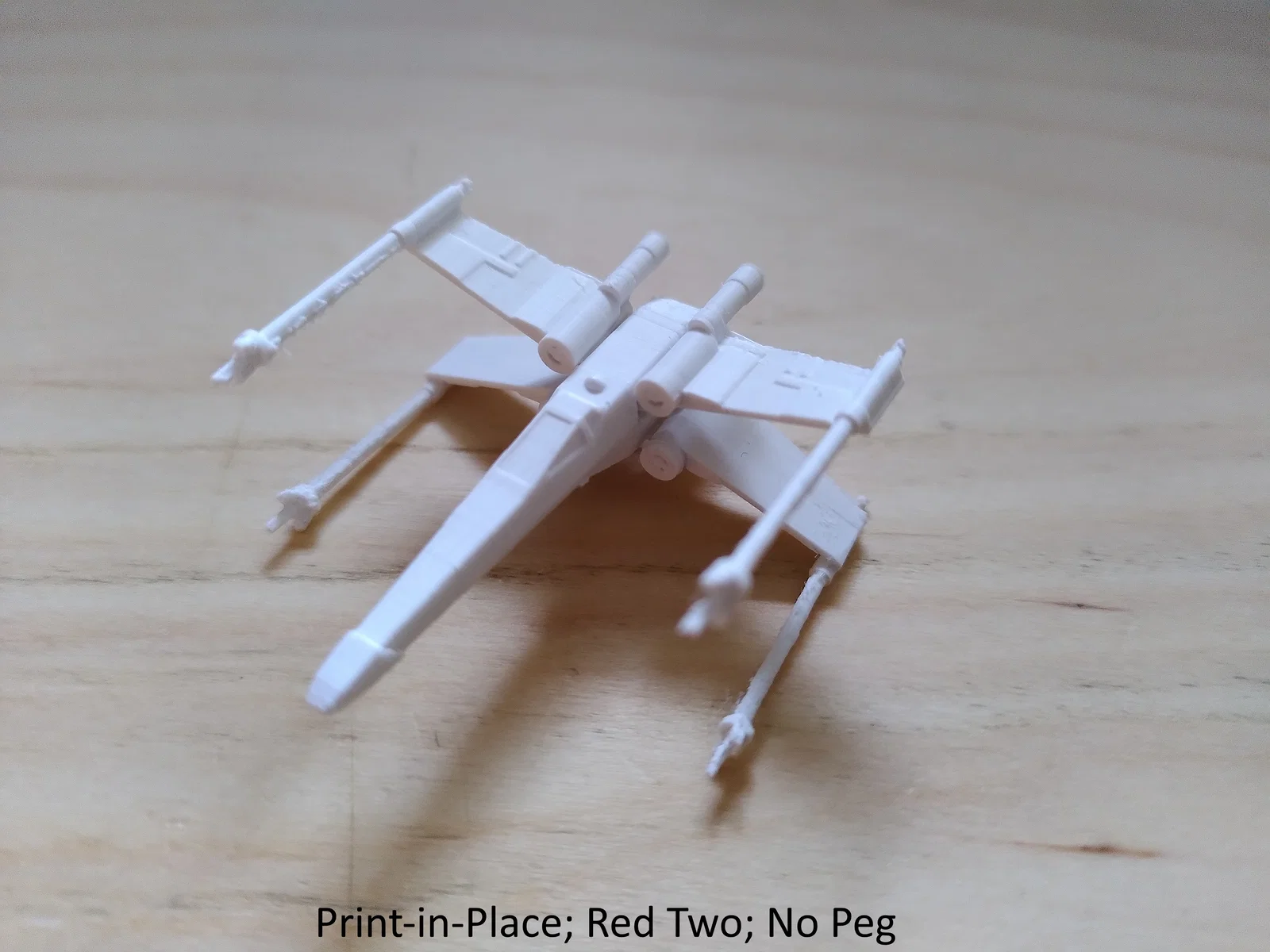 Phiên bản tiêu chuẩn là “t65_x_wing_print-in-place.stl”. Cánh dạng print-in-place và có thể mở/đóng khoảng ~30°. Khi in, cánh được đặt ở góc 15°, nằm giữa trạng thái mở và đóng. Mình phải tăng đường kính các khẩu cannon lên một chút để đỡ giòn, ít gãy hơn.