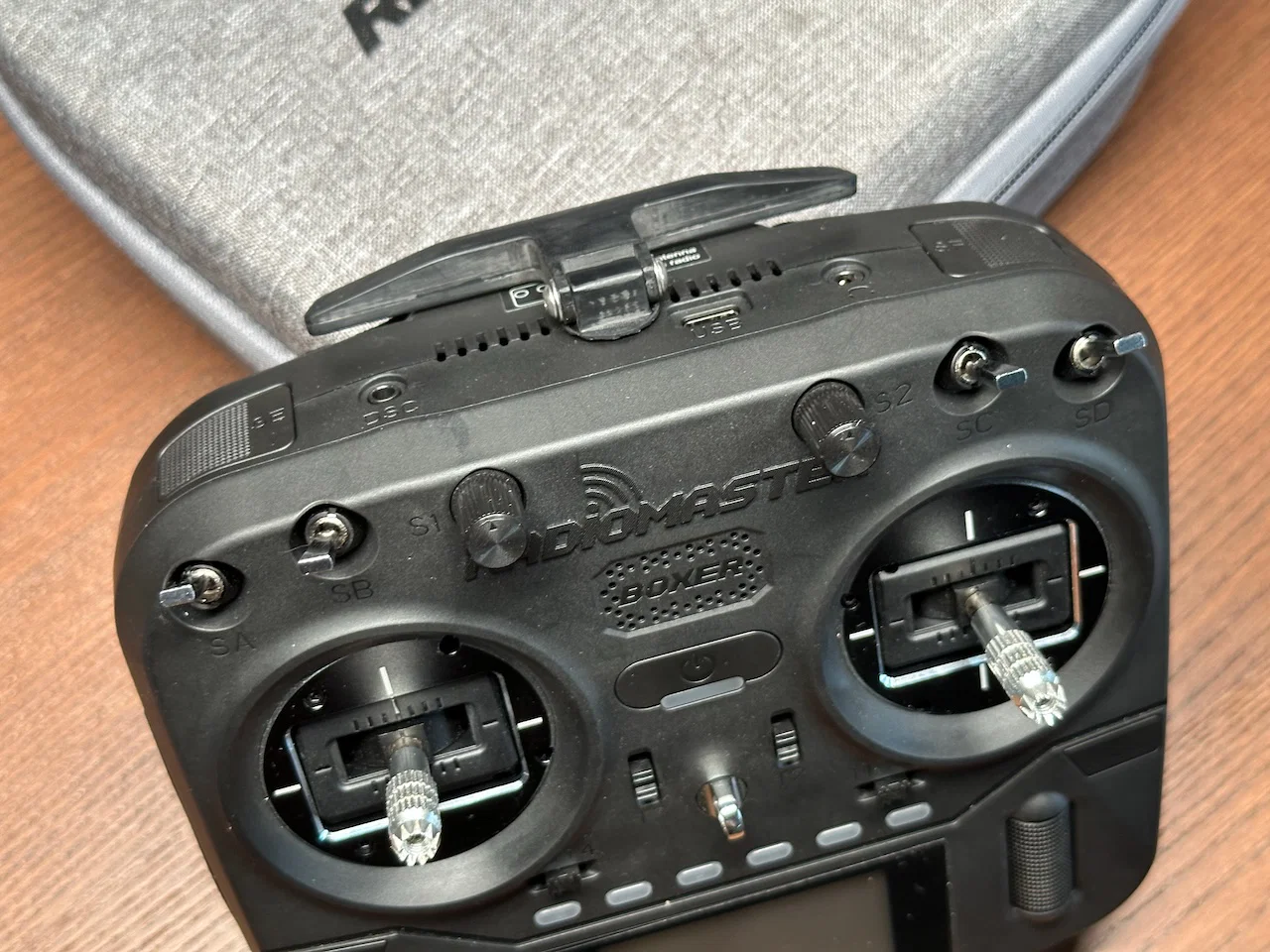 Mẫu anten gập low-profile cao khoảng 10mm cho Radiomaster Boxer. Cần mở radio để tháo anten zin, dán keo các phần mount/mount-plug sau khi gắn vào holder. Hỗ trợ dùng anten Foxeer ELRS 2.4GHz và ốc M3.