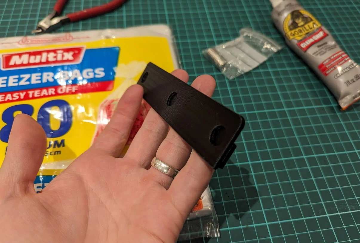 Một thương hiệu ở Úc tên là Multix có tặng kèm một cái móc treo nhựa miễn phí, có thể bắt vít vào tủ bếp để treo các túi freezer bag của họ. Bên mình thì muốn gắn nó ở hông tủ lạnh hơn là khoan/bắt vít vào tủ, nên mình làm một mẫu có các rãnh âm để nhét 3 viên nam châm neodymium dạng đĩa 10 x 2 mm, nhờ vậy nó sẽ dính lên bất kỳ bề mặt kim loại nào, lực giữ dư xài cho nhu cầu này.