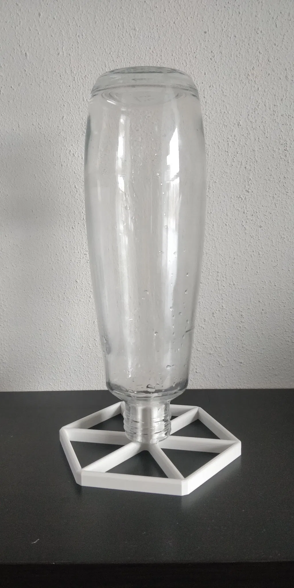 Tôi muốn có giá đỡ khô cho các chai SodaStream của mình để chúng có thể khô sau khi rửa. Vì tôi hơi lo lắng về việc chai thủy tinh có thể bị đổ, tôi đã chọn diện tích đáy của giá đỡ tương đối lớn.