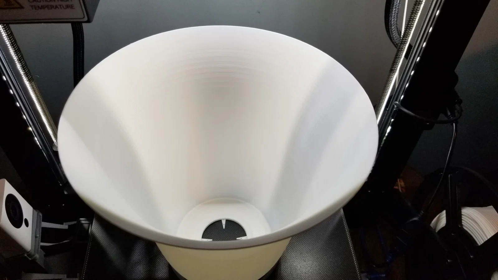 Mình in mẫu này ở vase mode với đáy 3mm và layer height 0.15mm. Với vài cái chụp đèn đầu tiên mình dùng nozzle 0.4mm, nhưng mình chỉnh line width lên 0.8mm và tăng flow cho tới khi không còn khe hở giữa các đường. Cách này cũng ổn, nhưng mình bị hư vài lần nên cuối cùng đổi sang nozzle 0.8mm thì chạy tốt hơn. Cách nào cũng làm được. Nhưng nhất định nên tăng line width lên 0.8mm, vì 0.4mm thì mềm/è oặt quá.