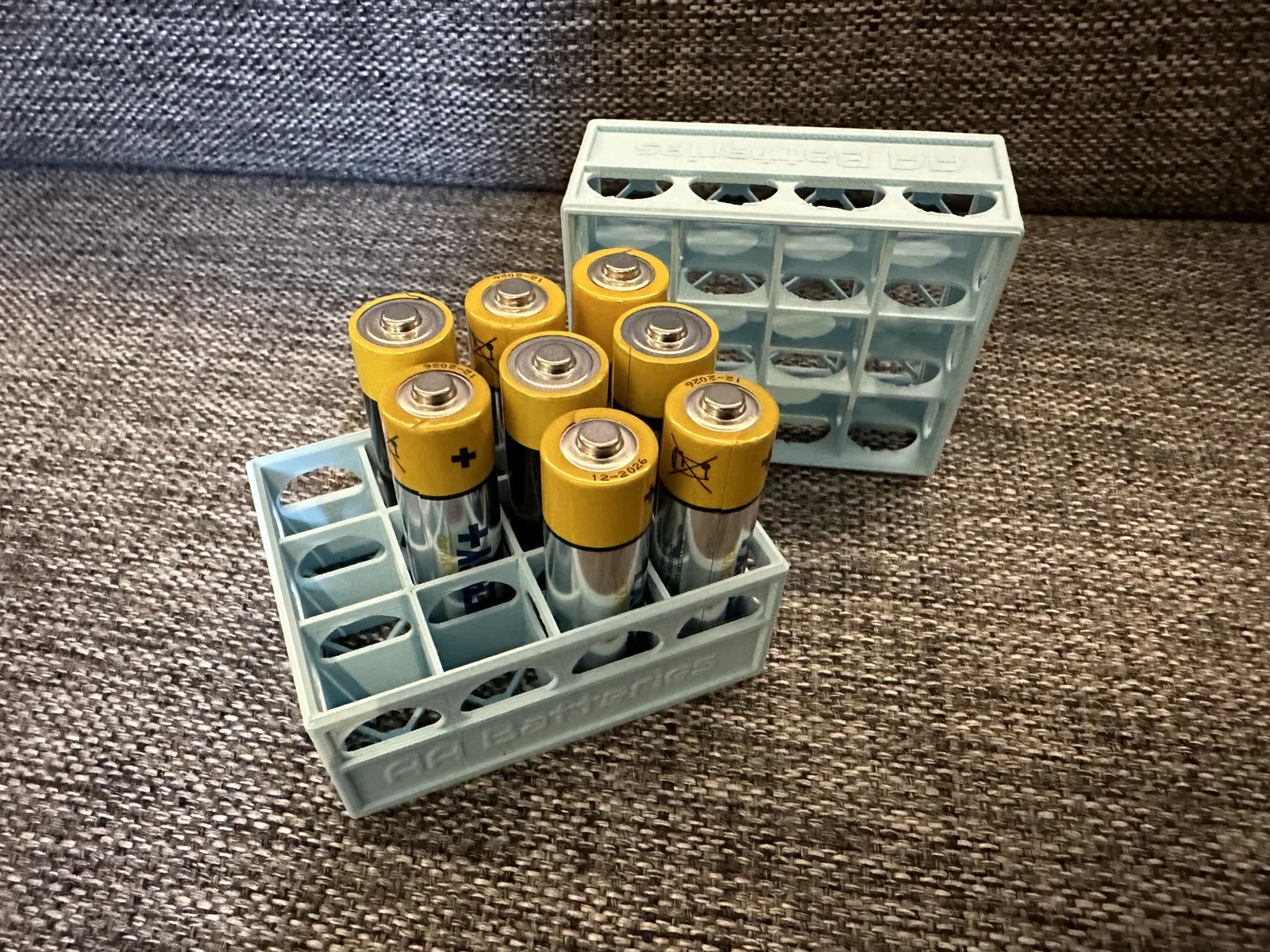 Giá đỡ pin AA đơn giản, giữ 12 loại pin. In tốt mà không cần hỗ trợ, tôi đã in của tôi bằng PLA.
