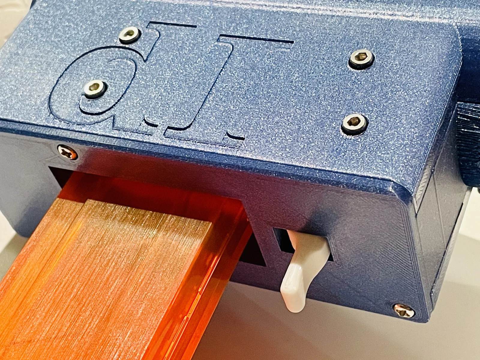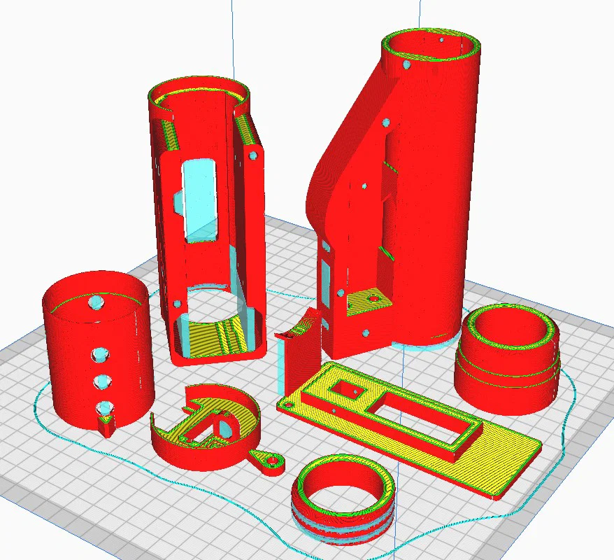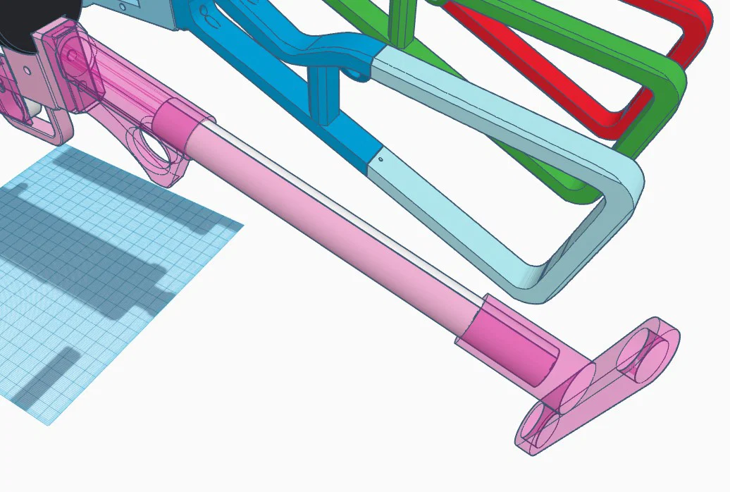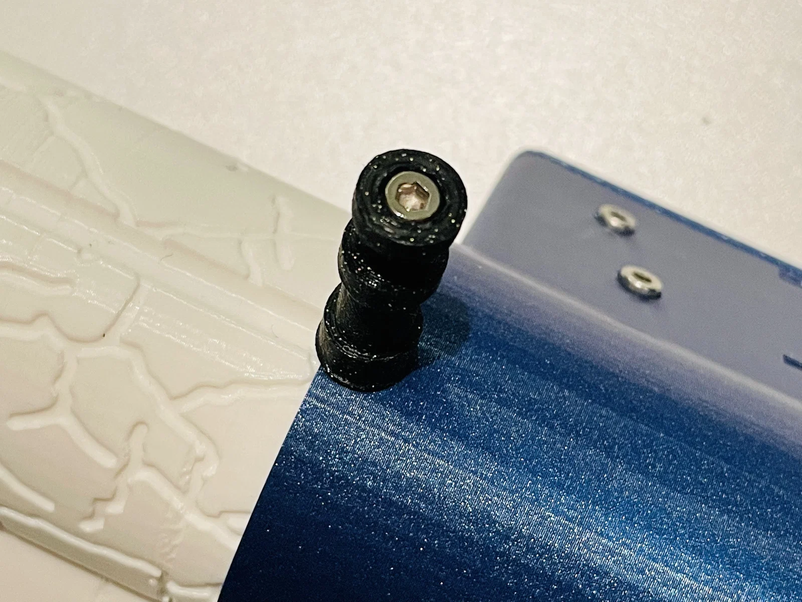 Có nhiều lựa chọn cho nắp pin (battery door) và báng (stock). Hai công tắc được gắn cạnh nhau và bạn sẽ cần bẻ/chỉnh các cần gạt (lever arms) một chút để chúng “click” lần lượt theo hành trình cò (trigger travel). Cò (trigger) dùng kiểu trục xoay giống springer thay vì trượt tới lui. Báng in thành hai nửa (có thể đổi màu) và được thiết kế để in theo hướng phẳng nhằm tăng độ bền, rồi dán lại theo chiều dài báng bạn thích. Mình có kèm hình hướng đặt để in (print orientation); khuyến nghị chặn support ở các lỗ nơi sẽ lắp ốc và heat inserts.