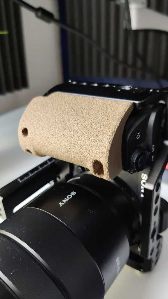 Tay cầm in 3D cho cage Smallrig CCS2310/2310, tối ưu để cầm chắc khi gắn lens lớn. Đã thử trên Sony a6400 (có thể hợp a6100/a6300, không vừa a6500). Khuyến nghị in úp và bật Fuzzy skin trong Cura.