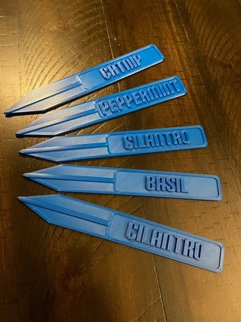 Bộ sưu tập hơn 100 mẫu cọc cắm vườn cho thảo mộc, rau củ và hoa. In một màu, dễ đọc, chắc chắn. Có brim dot ở đầu để hạn chế cong vênh, không cần brim hay support; có thể scale tùy ý.