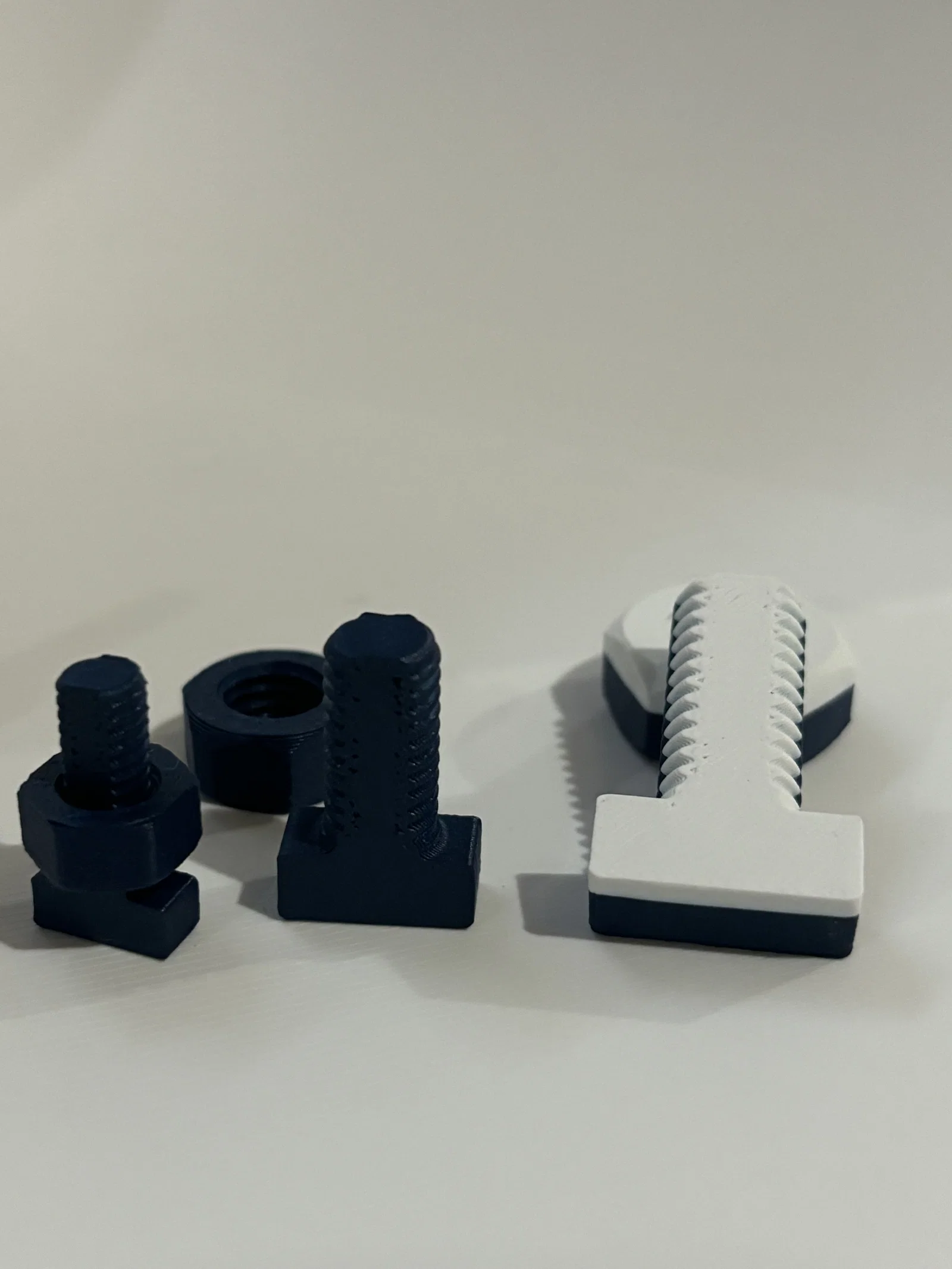 Nhớ đảm bảo file có X-Y compensation đúng, như vậy các đai ốc lục giác sẽ trượt/vặn vào T-Bolt mượt. (Cũng sẽ vặn mượt với bu lông thép thật hoặc các bu lông in 3D dạng trụ khác.)