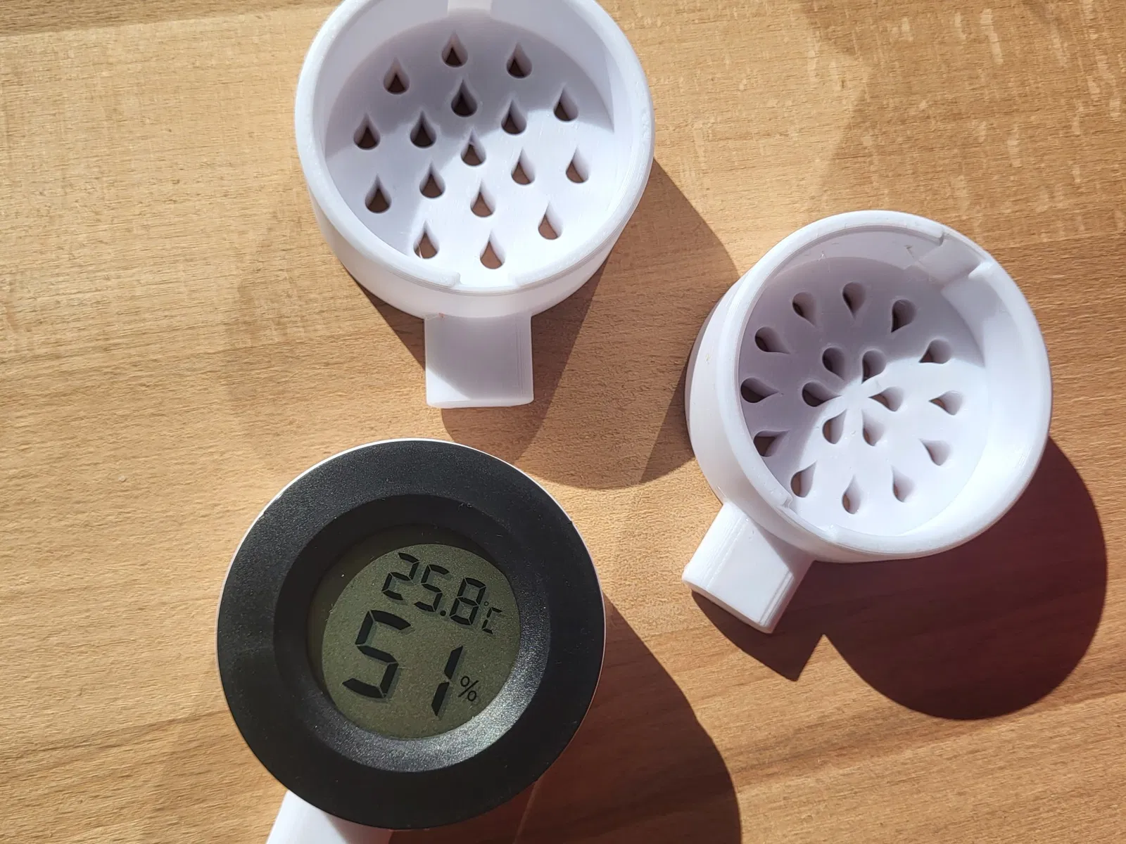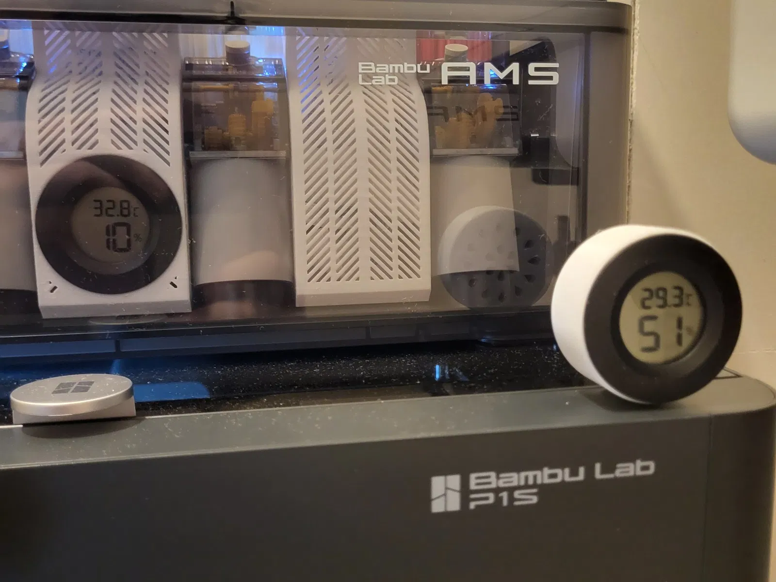 Đồng hồ đo độ ẩm bên ngoài dành cho Bambu Lab P-Series, với hai thiết kế lỗ thông gió khác nhau để có được các chỉ số chính xác hơn.