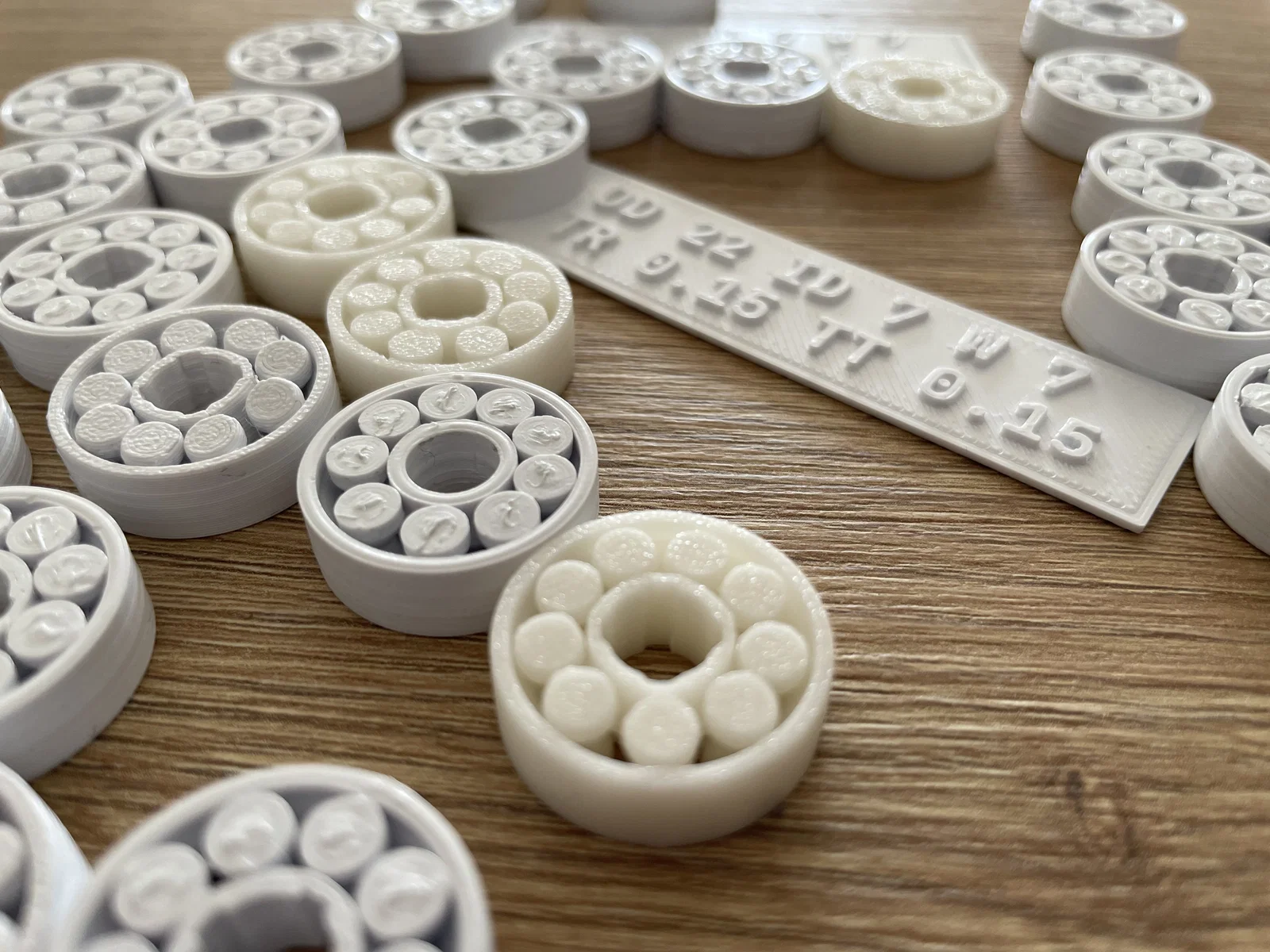 Bạn đã có một cái bearing chạy được, quá đã! Vì bạn đã tốn khá nhiều thời gian để hiệu chỉnh, thì tốt nhất nên in thêm vài cái nữa với cùng loại filament và cùng settings. Đừng lặp lại sai lầm của mình, đừng in kiểu này (trừ khi bạn muốn có 25 cái không chạy):