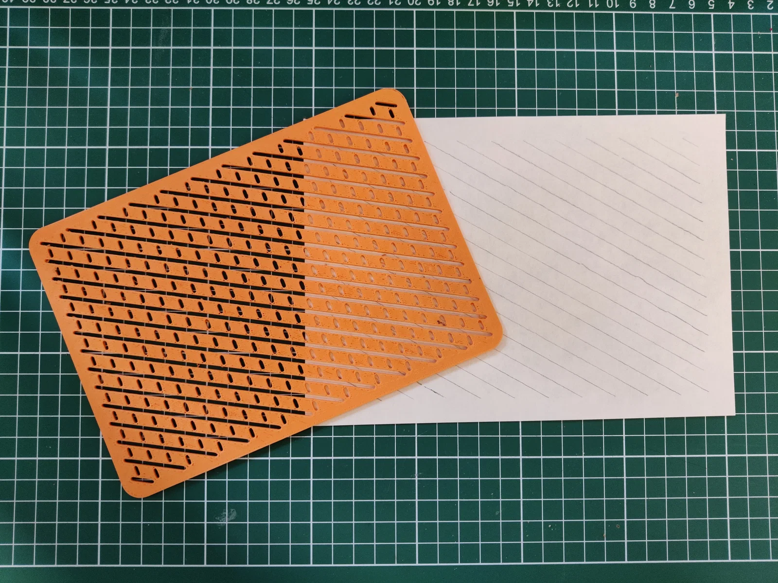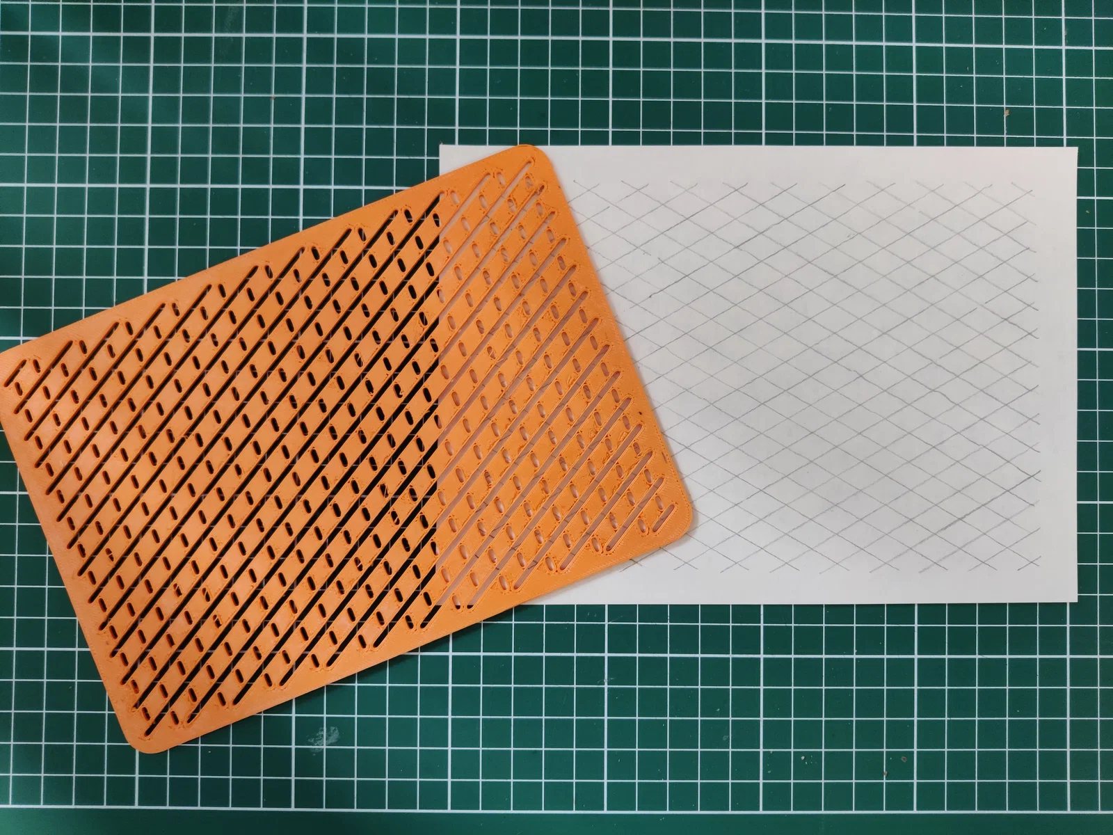 Làm theo các bước trong hình để kẻ đầy đủ các đường. Trong lúc can nét (tracing), mình nhận ra dùng cạnh bên của template để kẻ các đường lên/xuống sẽ nhanh hơn, nên mình cũng thêm một file STL của template không có các lỗ nhỏ để giảm thời gian in.