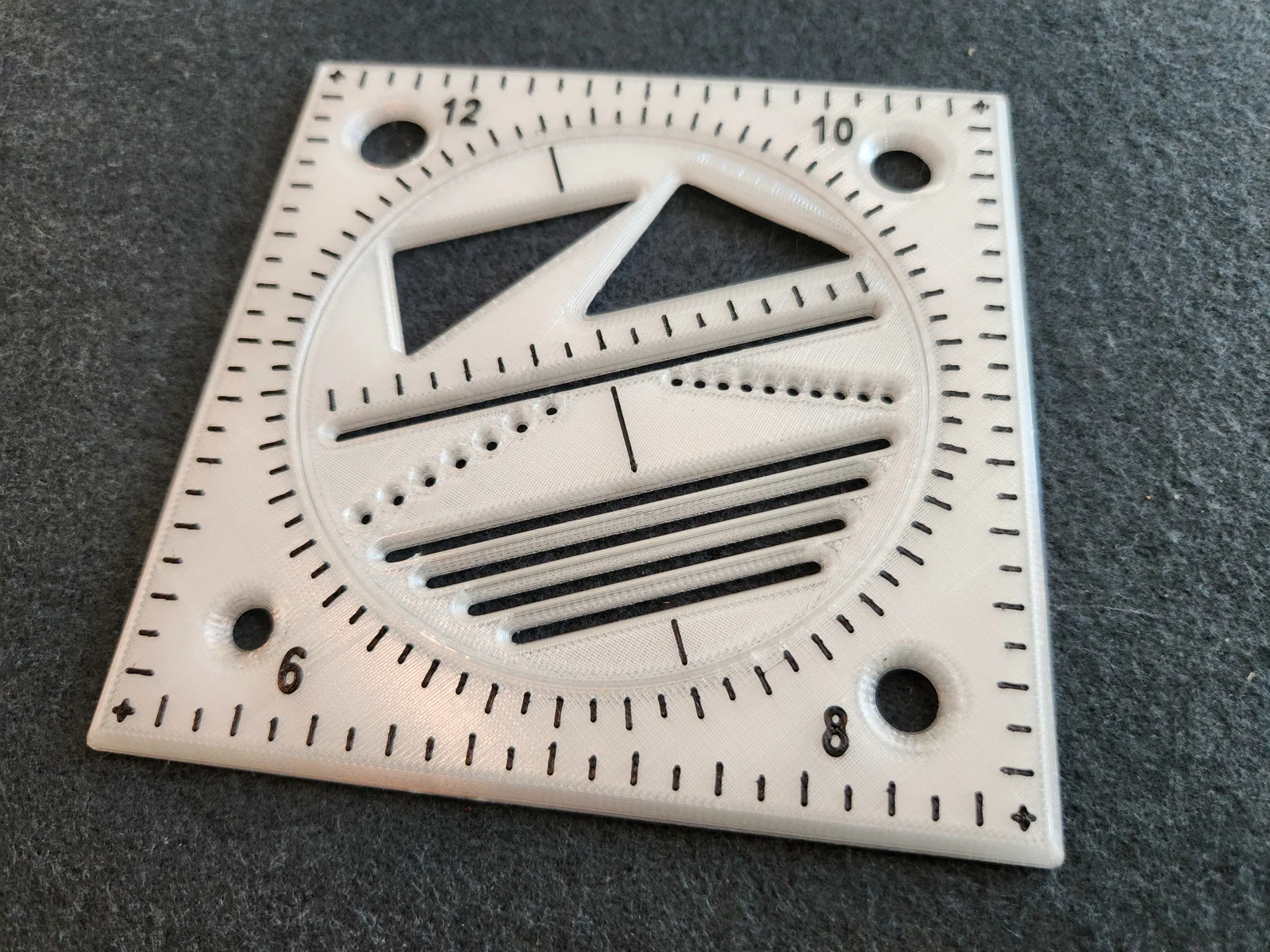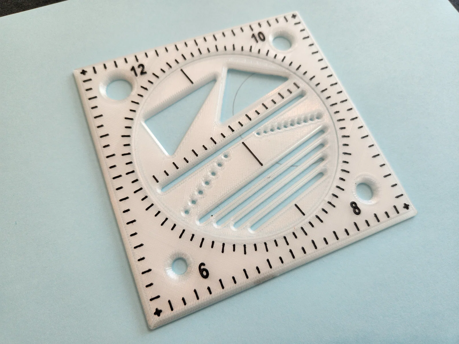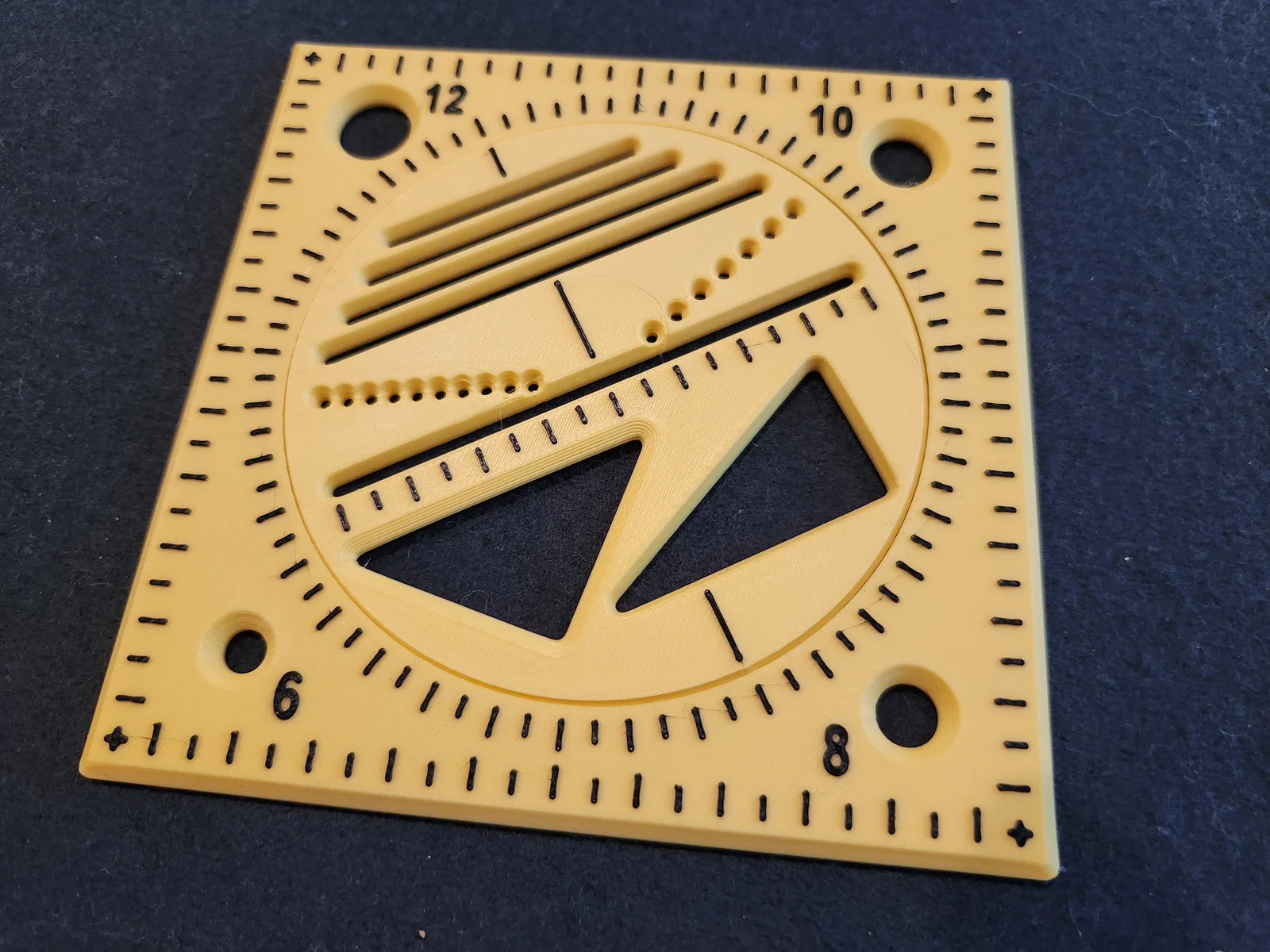 Mẫu này được thiết kế để print-in-place với nozzle 0.4 mm và layer height 0.2 mm; bạn có thể dùng tính năng đổi filament để in các vạch chia ở mặt trên bằng màu khác trong hai lớp cuối cùng.
