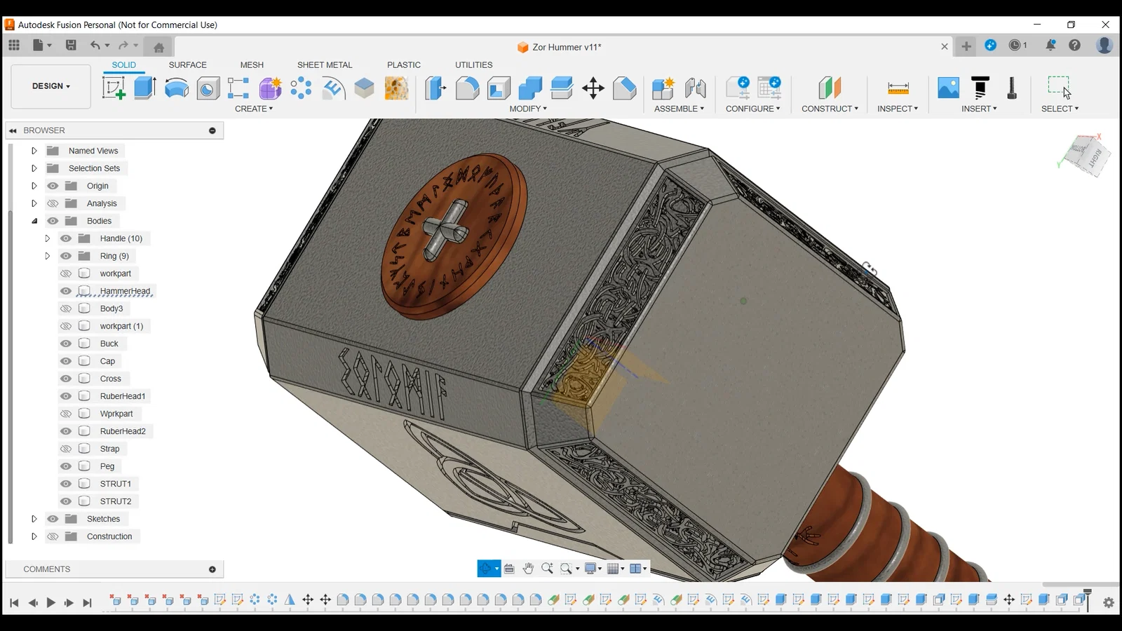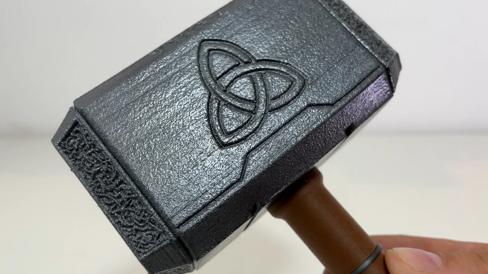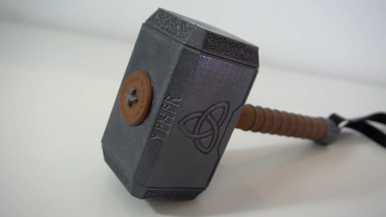 Búa Thor mini (Mjölnir) dạng squishy cho bé 1–5 tuổi. In được hoàn toàn, không cần ốc vít, chỉ cần dán keo. Đầu búa có thể in TPU/VarioShore cho an toàn; dây đeo cũng in TPU hoặc làm dây da.