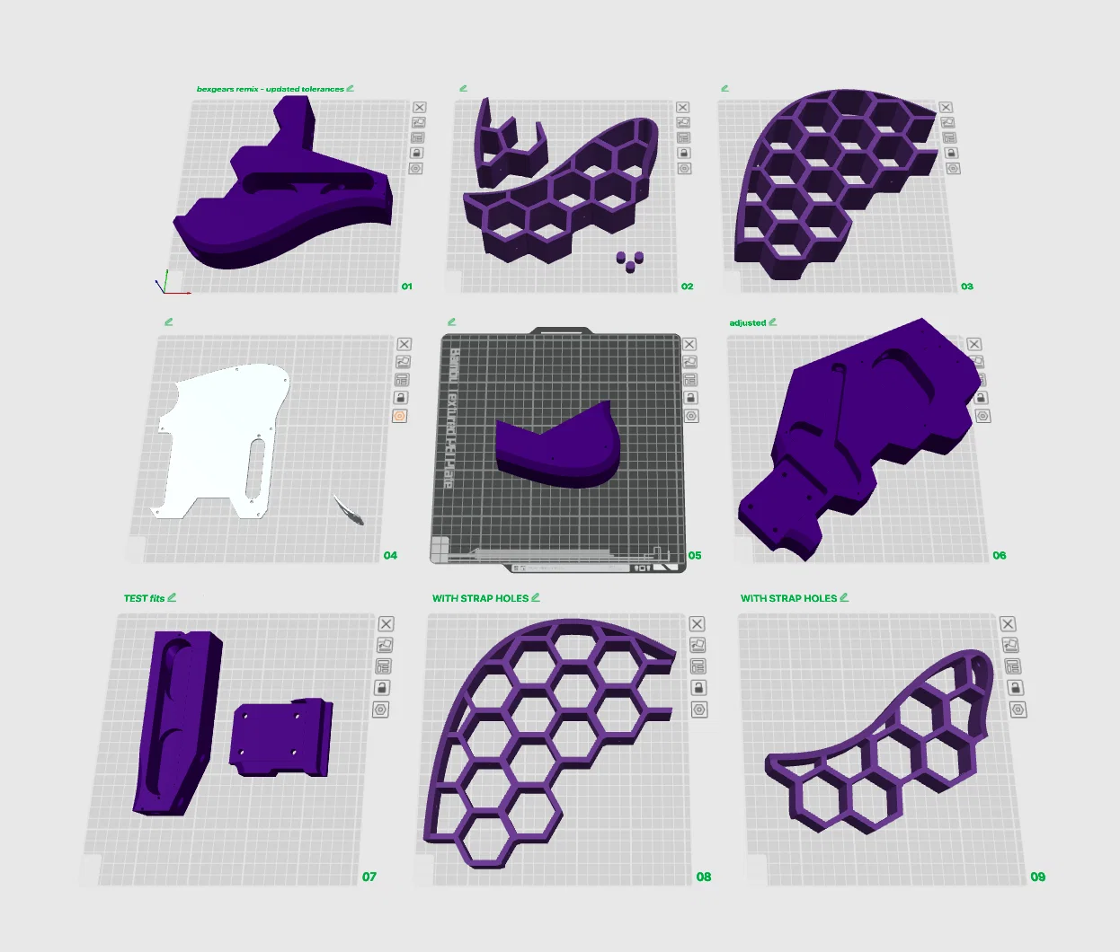 Bản cập nhật tinh chỉnh cho kit Amazon US (tới 5/2024), giúp fit tốt hơn với neck và hộp electronics. Khuyên in thử miếng test 25g trước khi in body 550g. Có file hex có/không lỗ và kèm Bambu 3MF.