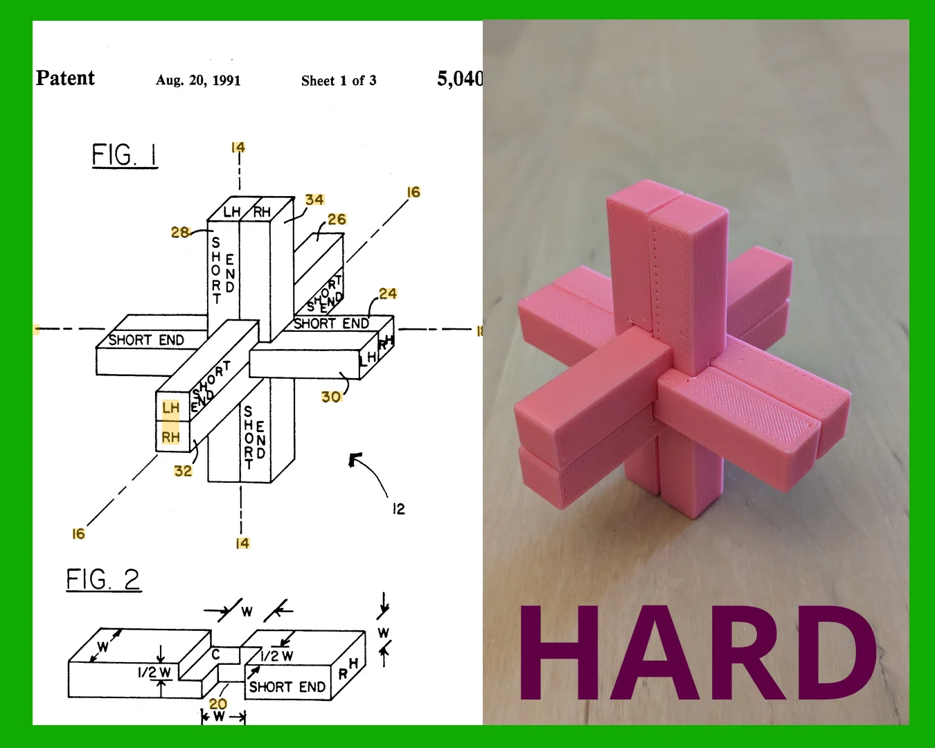 Mình đang đọc mấy bằng sáng chế câu đố cơ khí đời cũ (chuyện bình thường mà), thì thấy câu đố của Dirk H. Dykstra (United States patent US5040797A) nổi bật vì có vẻ rất dễ để 3D print. Việc suy ra kích thước cũng đau đầu chẳng kém một câu đố, nhưng giờ mình đã ra được thông số nên chia sẻ lại cho bạn!