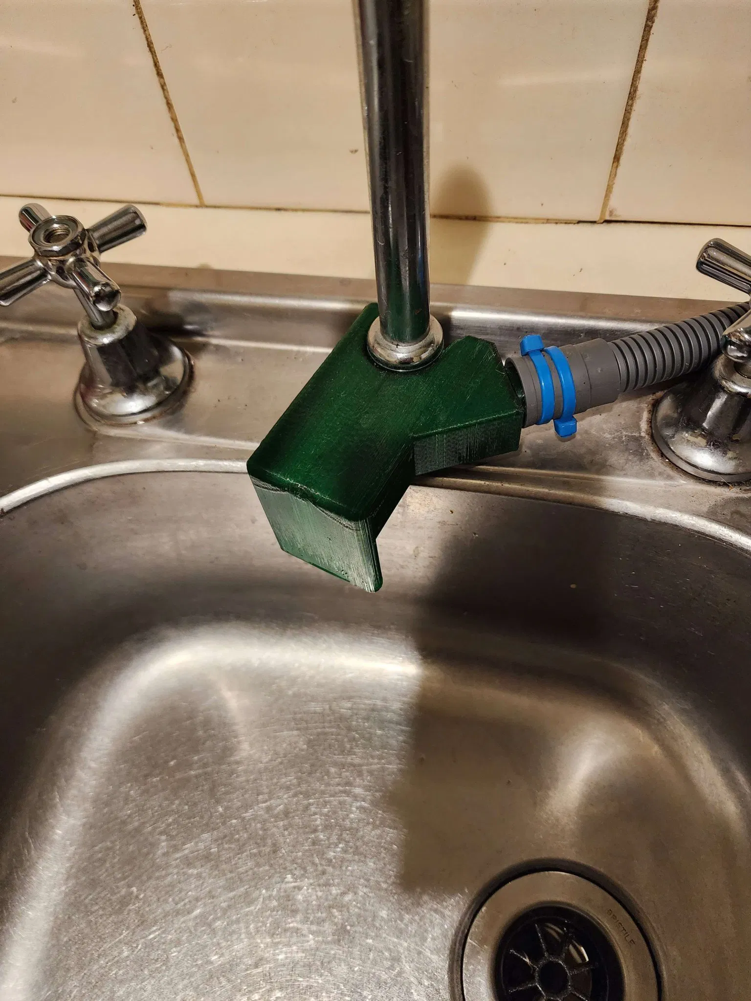 Tôi đã làm một bộ chuyển đổi thoát nước để trượt qua vòi nước bồn rửa 30mm và kết nối với ống máy rửa chén tiêu chuẩn. Tôi đã làm điều này vì máy rửa chén để bàn của chúng tôi không có cách nào để thoát nước bẩn mà không khoan lỗ trên bàn để gắn vào ống thoát nước bồn rửa, vì chúng tôi sống trong một căn hộ cho thuê, điều này sẽ không được phép và đây là giải pháp của tôi. Tôi đã làm nó từ PETG nên nó có thể chịu được nhiệt độ và chất tẩy rửa mà máy rửa chén phát ra. Cho đến nay, nó vẫn hoạt động tốt trong một tháng mà không có dấu hiệu nào cho thấy nhựa bị suy giảm. Tôi gợi ý nên in đặc hoặc ít nhất là làm cho nó có các bức tường dày để bộ phận không bị đầy nước theo thời gian. Hy vọng ai đó có vấn đề tương tự sẽ thấy điều này hữu ích.