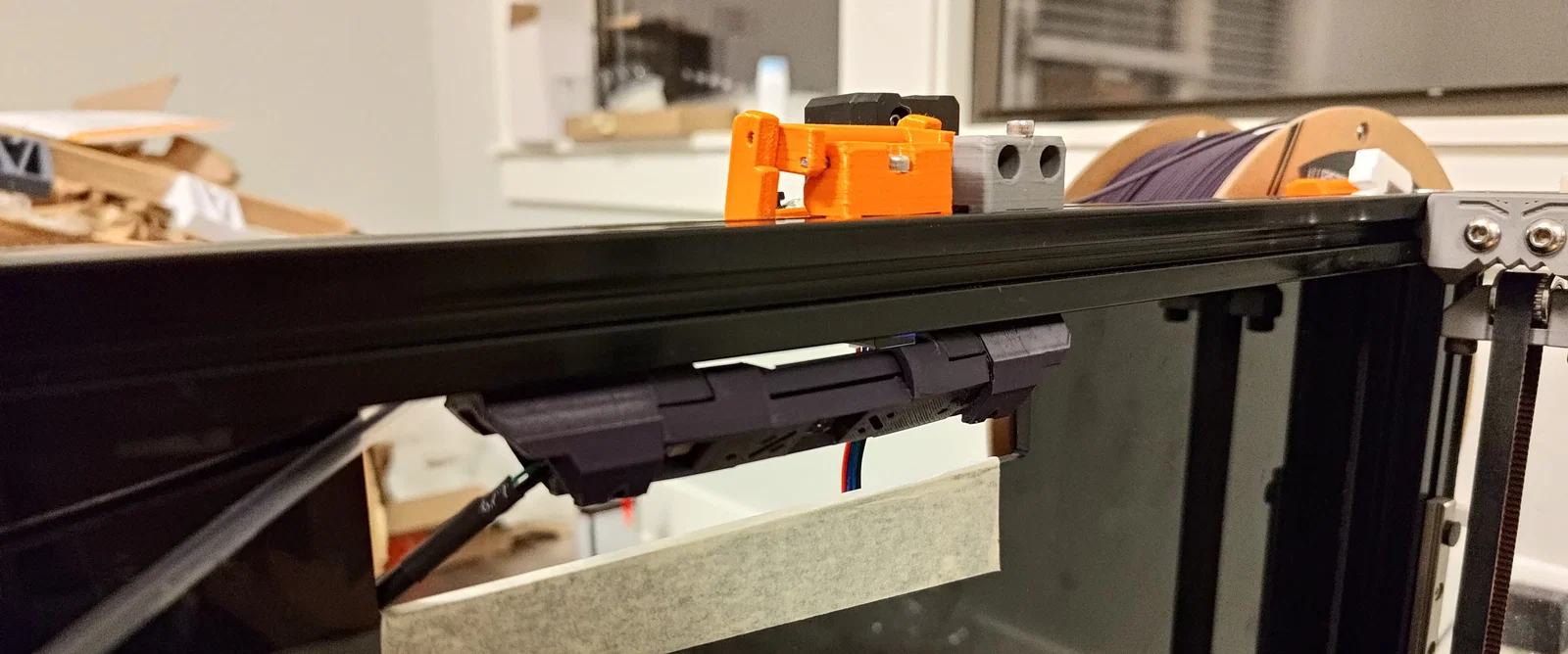 Gắn module lên gantry bằng miếng bên hông. Phần này cũng mở rộng để đi dây theo bất kỳ hướng nào. Miếng bên hông cũng giúp giữ hai nửa thân lại với nhau. Mình làm 2 phiên bản miếng bên: một bản khoét hở, một bản vòng tròn kín. Ý tưởng là có bạn sẽ muốn lắp housing vào mà không cần luồn dây “xuyên qua” ngàm bên.