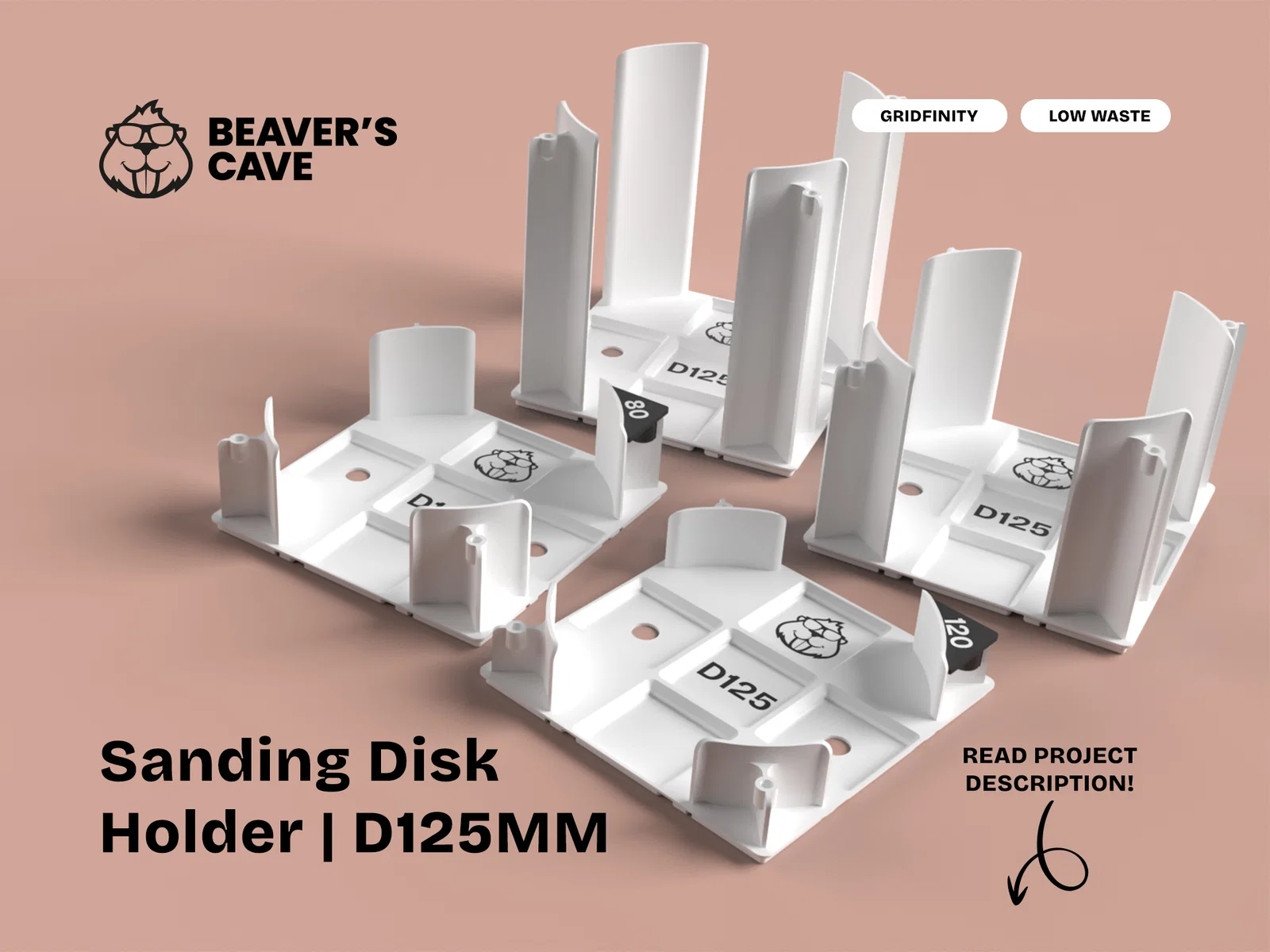 Khay/holder nhám tròn D125 tương thích Gridfinity, in nhanh, ít hao vật liệu và bền bỉ. Thiết kế modular xếp chồng gọn gàng, có nhiều chiều cao H25–H120, tùy chọn 1–2 màu và nhãn tùy chỉnh.