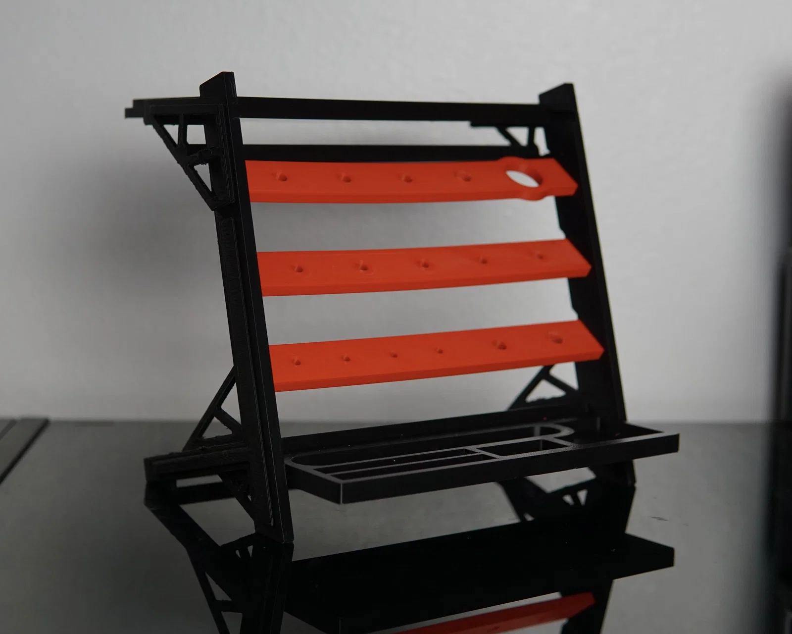 Giá đỡ tua vít kiểu dáng gọn gàng, hiện đại, có thể điều chỉnh linh hoạt. Thiết kế nhỏ gọn để đặt trên bàn làm việc hoặc workbench, hỗ trợ sắp xếp dụng cụ ngăn nắp và dễ lấy.