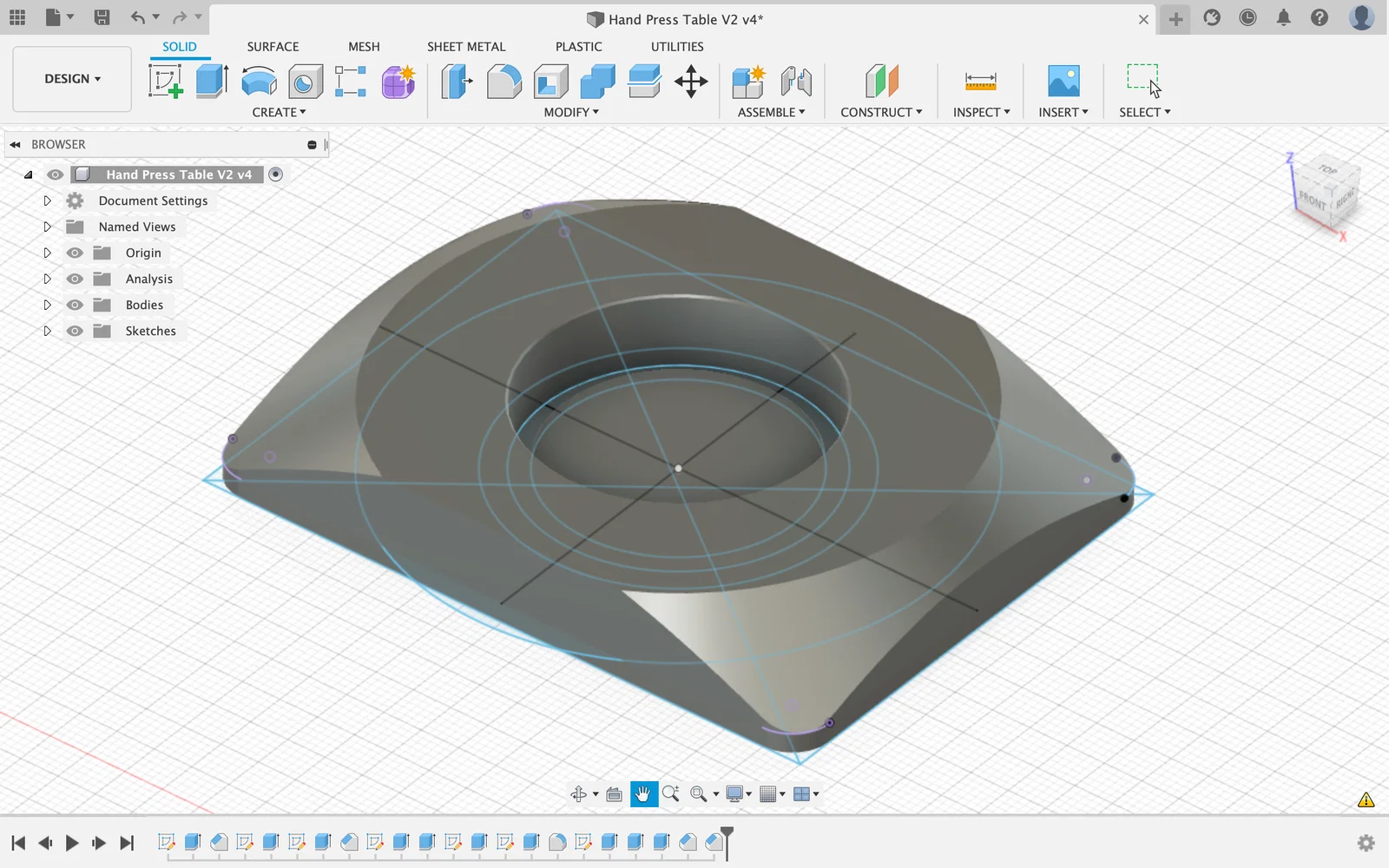 Trong quá trình thiết kế, mình chú trọng độ ổn định của platform, tập trung giảm độ rơ và độ flex dư. Nó có một phần recess ôm vừa bên ngoài của movement support ở phần đế. Đồng thời có một phần nhô lên để lấp khoảng trống nơi movement holder thường ngồi. Các bề mặt cong giúp cầm nắm dễ và tháo/lắp platform thuận tiện.