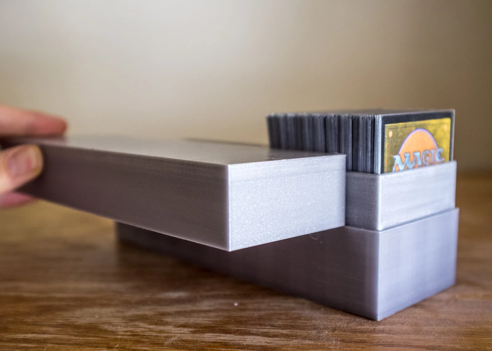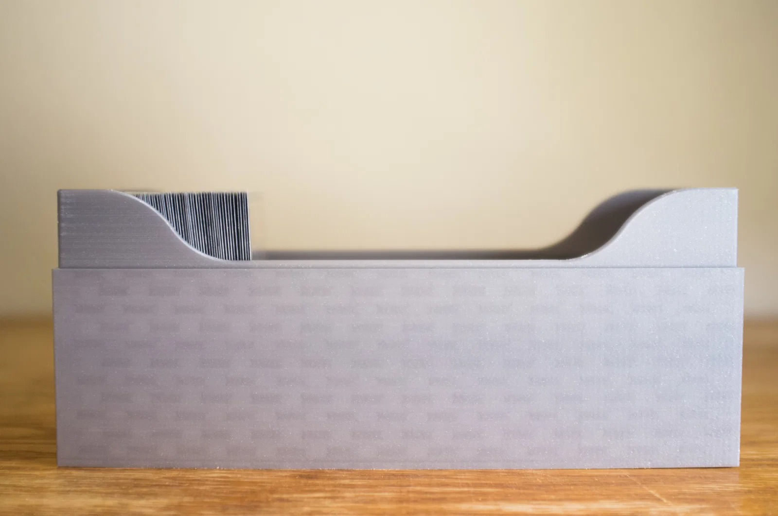 Phần tiếp giáp giữa nửa trên và nửa dưới của hộp cần được hoàn thiện/chà nhám sau khi in, vì khi lắp lại rồi thì hộp sẽ rất khó mở do khoảng hở lắp ráp rất nhỏ. Ngoài ra, do các layer lines của hai nửa cùng hướng với nhau, một hộp đựng bài không được chà nhám sau khi in gần như sẽ không thể mở ra.