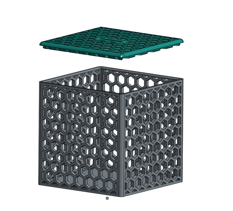 Mẫu hộp tiết kiệm (spardose) họa tiết hexagon, thiết kế để đựng xu từ 2 cent đến 2 euro. Kích thước ngoài 107×107×107mm, trong 100×100×100mm; in không cần supports, layer height 0.24, infill 15%.