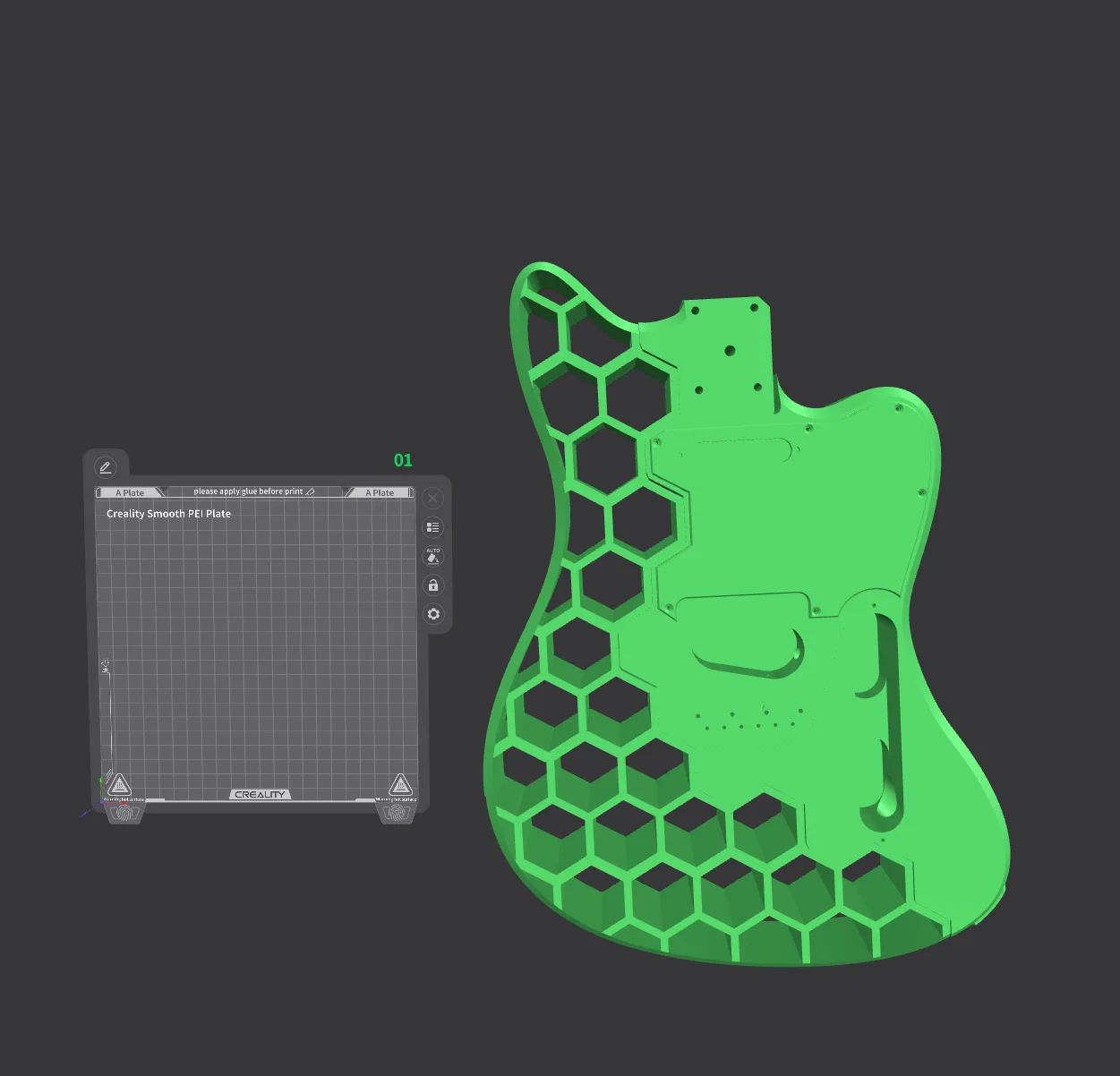 Thân đàn guitar Prusacaster cắt nhỏ cho máy in Creality K1 và K1C