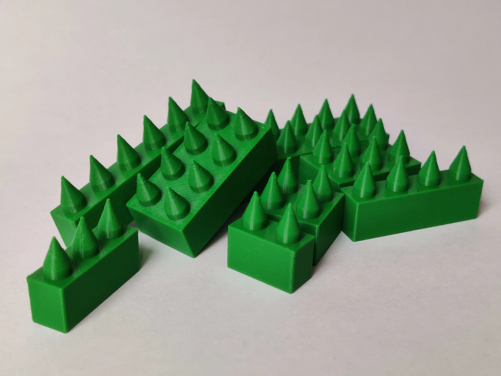Mẫu “brick có gai” theo kích thước chuẩn, thêm gai để tăng độ “sát thương”. Khuyến nghị line width 0.45 và chỉnh flow ±1% để khớp vừa. Có 11 kích thước, kèm GCode cho Prusa MK4/MK3S/MINI.