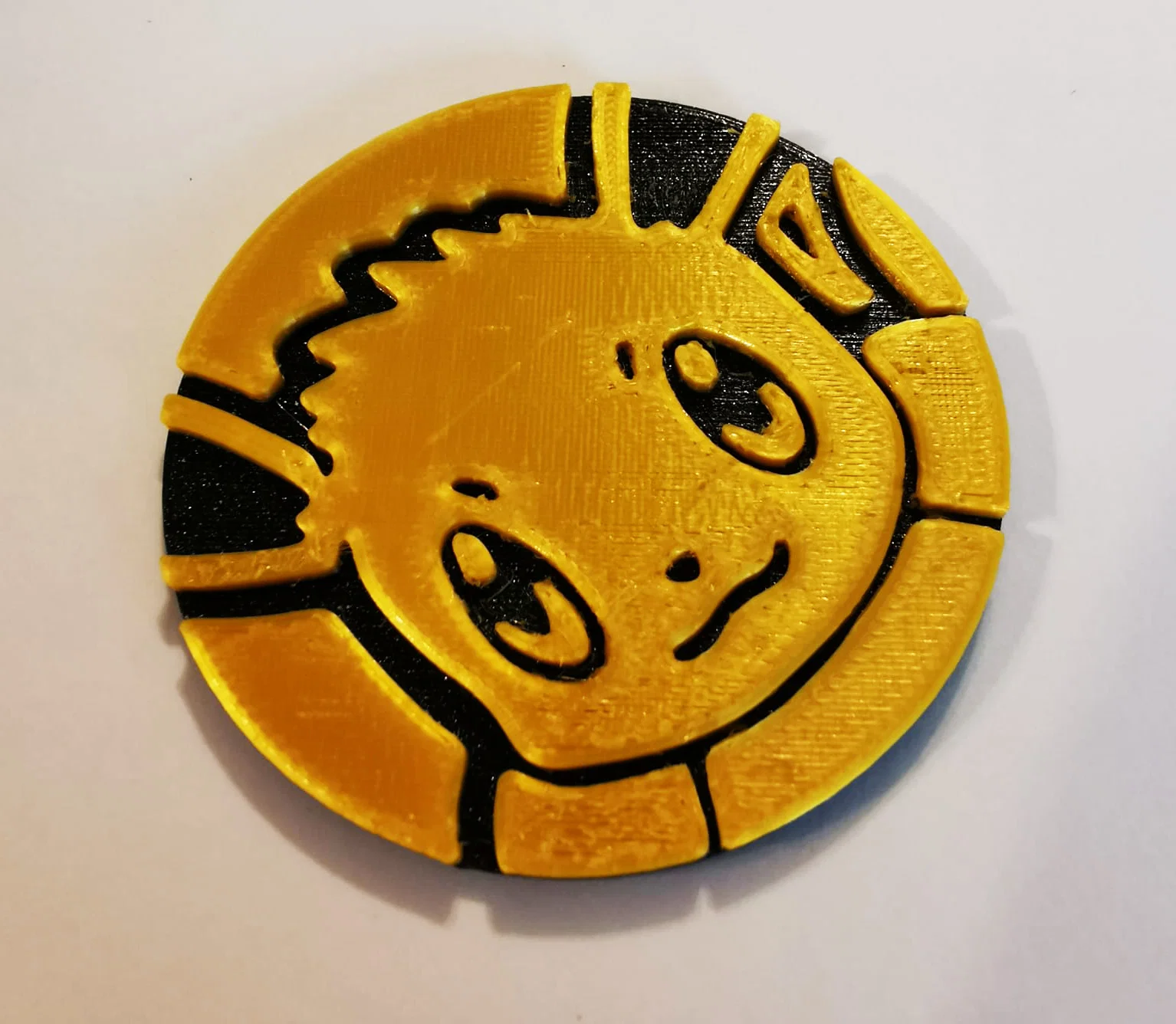 Bé nhà mình mê cái đồng xu Pokemon này quá nên mình làm cho bé, dựa theo một tấm hình rồi dựng lại để in 3D.