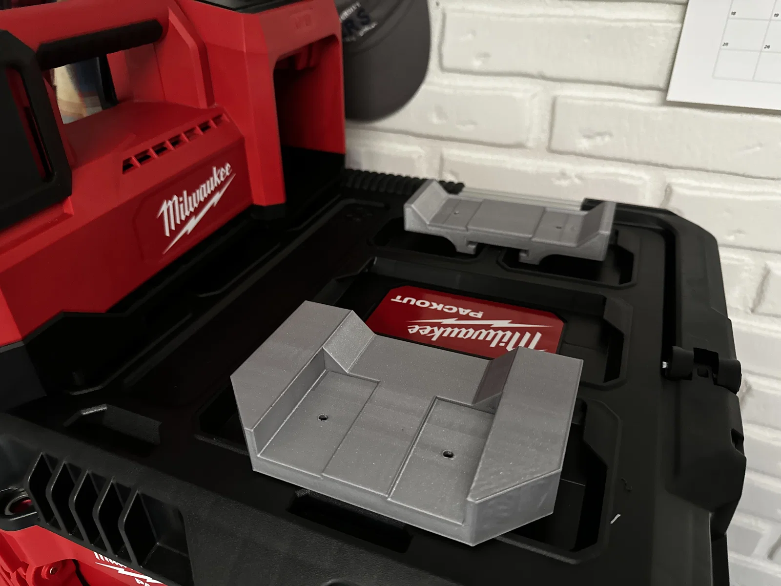Mình làm bản chuyển đổi đơn giản này để có thể xếp chồng M18 Inflator lên Milwaukee Packout. Phần chân cao su có thể tận dụng lại bằng cách dùng M4 heat set insert và vít M4x10.