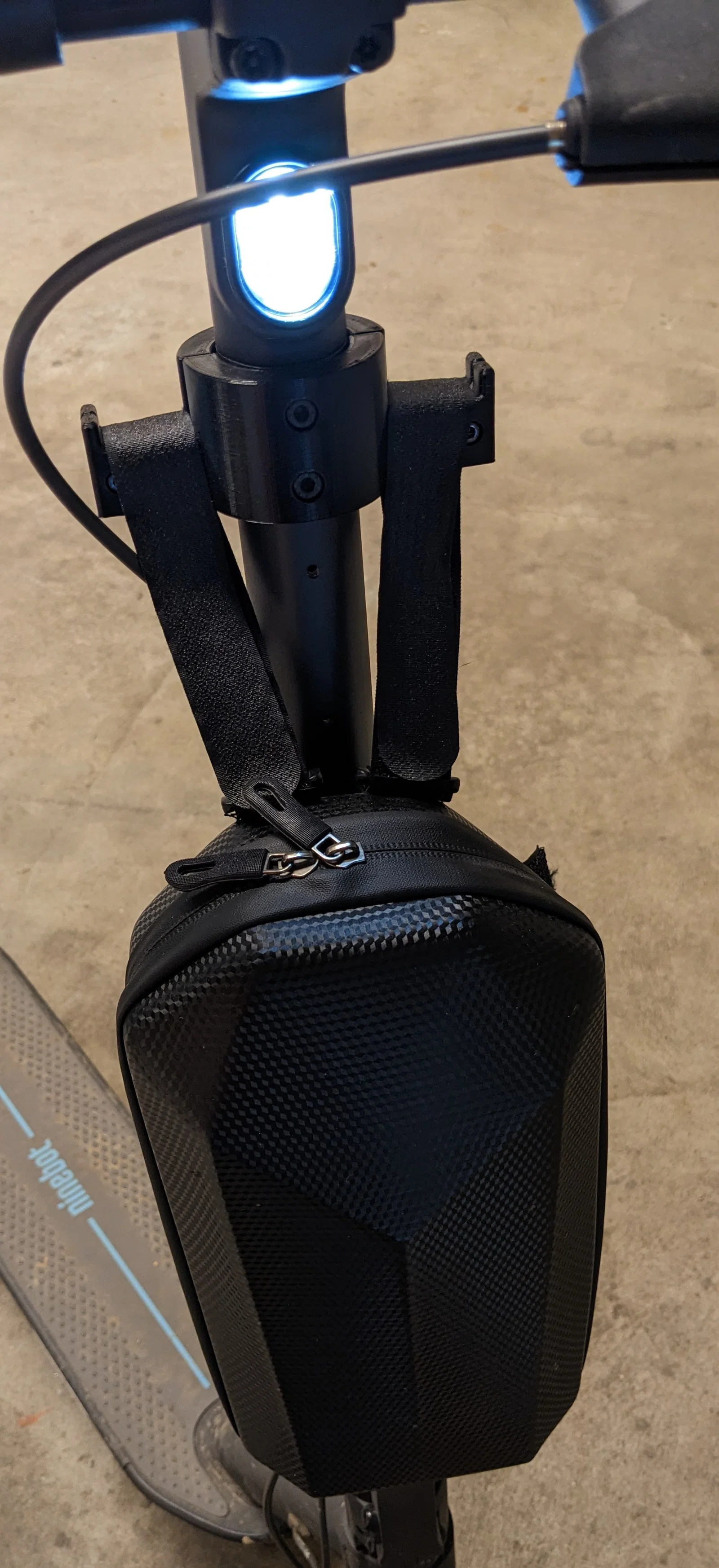 Giá treo túi (bag holder) cho Segway Ninebot Max G30D II giúp gắn túi phía trước mà không che đèn. Dễ thao tác dây kéo để mở túi, hạn chế bị vướng khi lên/xuống xe, còn treo thêm túi đồ được.