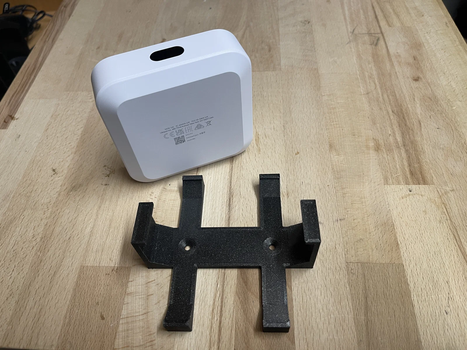 Cái bracket này giữ Ubiquiti UniFi UX Express chắc chắn, nhưng không đến mức khó tháo—vẫn có thể bấm “click” ra lại dễ dàng. Đồng thời, bạn có thể thay/cắm dây bằng một tay.