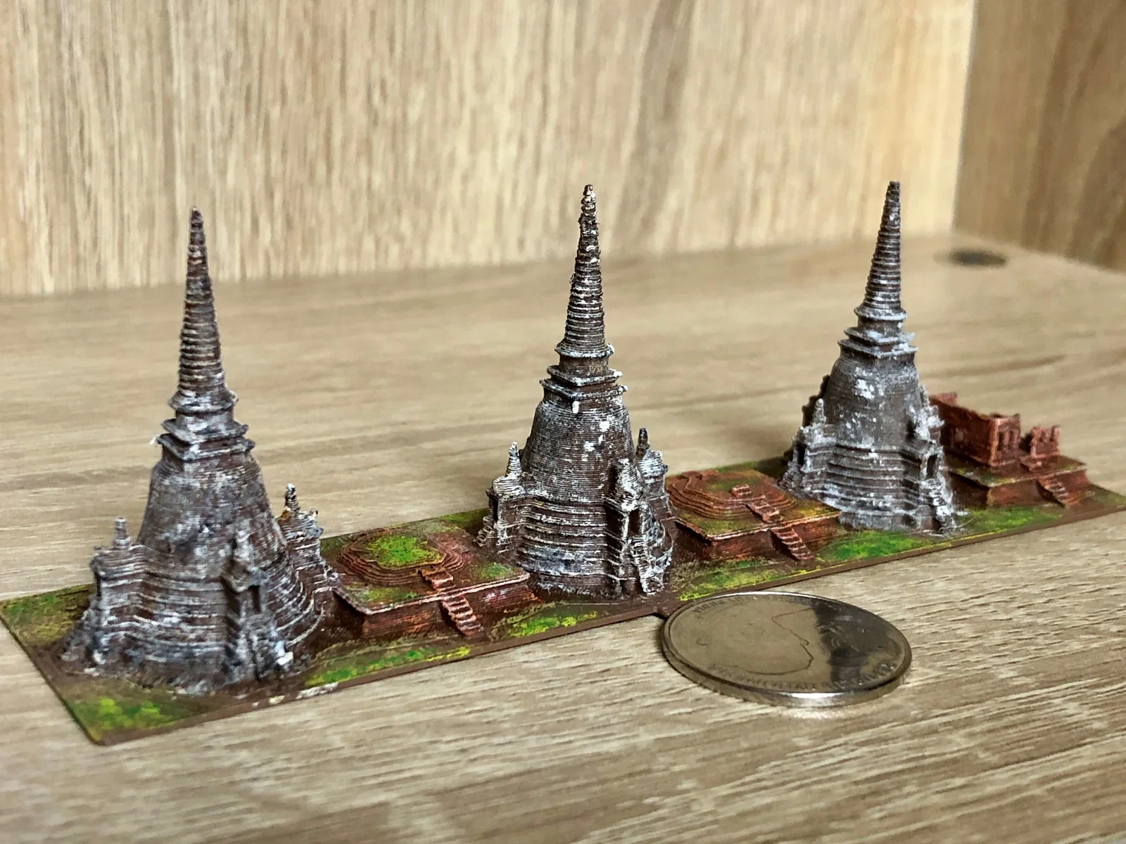 Mô hình mini Wat Phra Si Sanphet ở cố đô Ayutthaya, Thái Lan: thiết kế dễ in, không cần supports, tối ưu lại năm 2024 với nhiều chi tiết hơn. Phù hợp in trưng bày các công trình cổ và stupa đặc trưng.