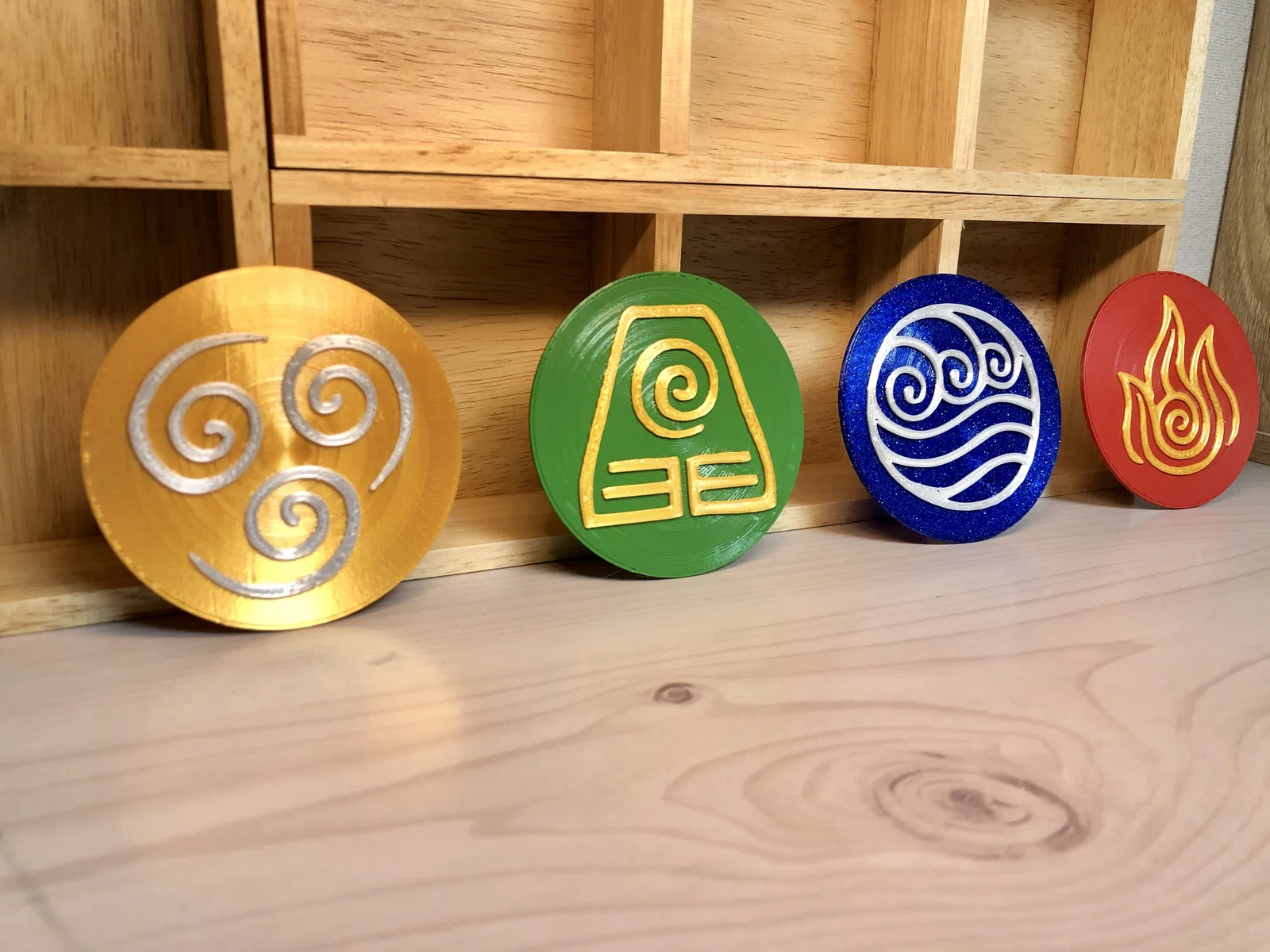 Mình là fan của Avatar: The Last Airbender, nên mình làm bộ lót ly (coaster) hoặc tấm 2D siêu dễ in này, với biểu tượng của cả 4 nguyên tố trong series.