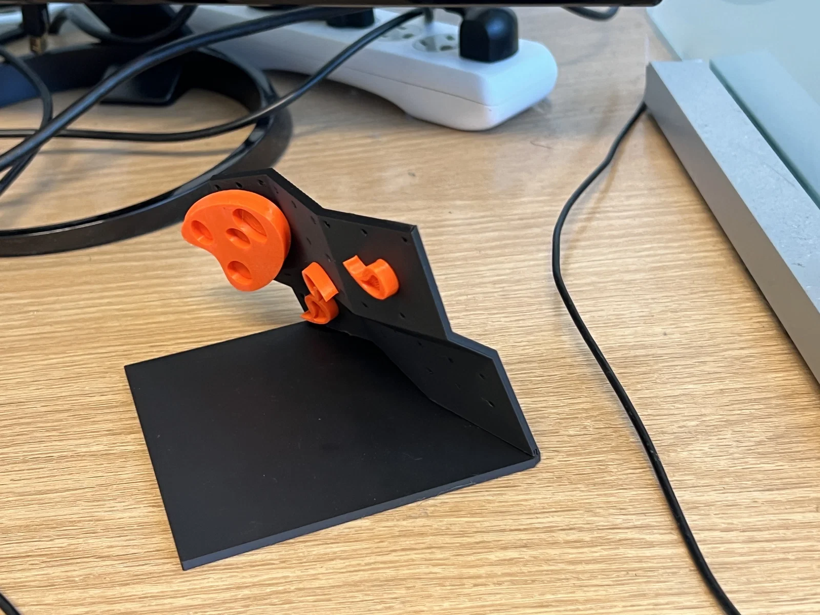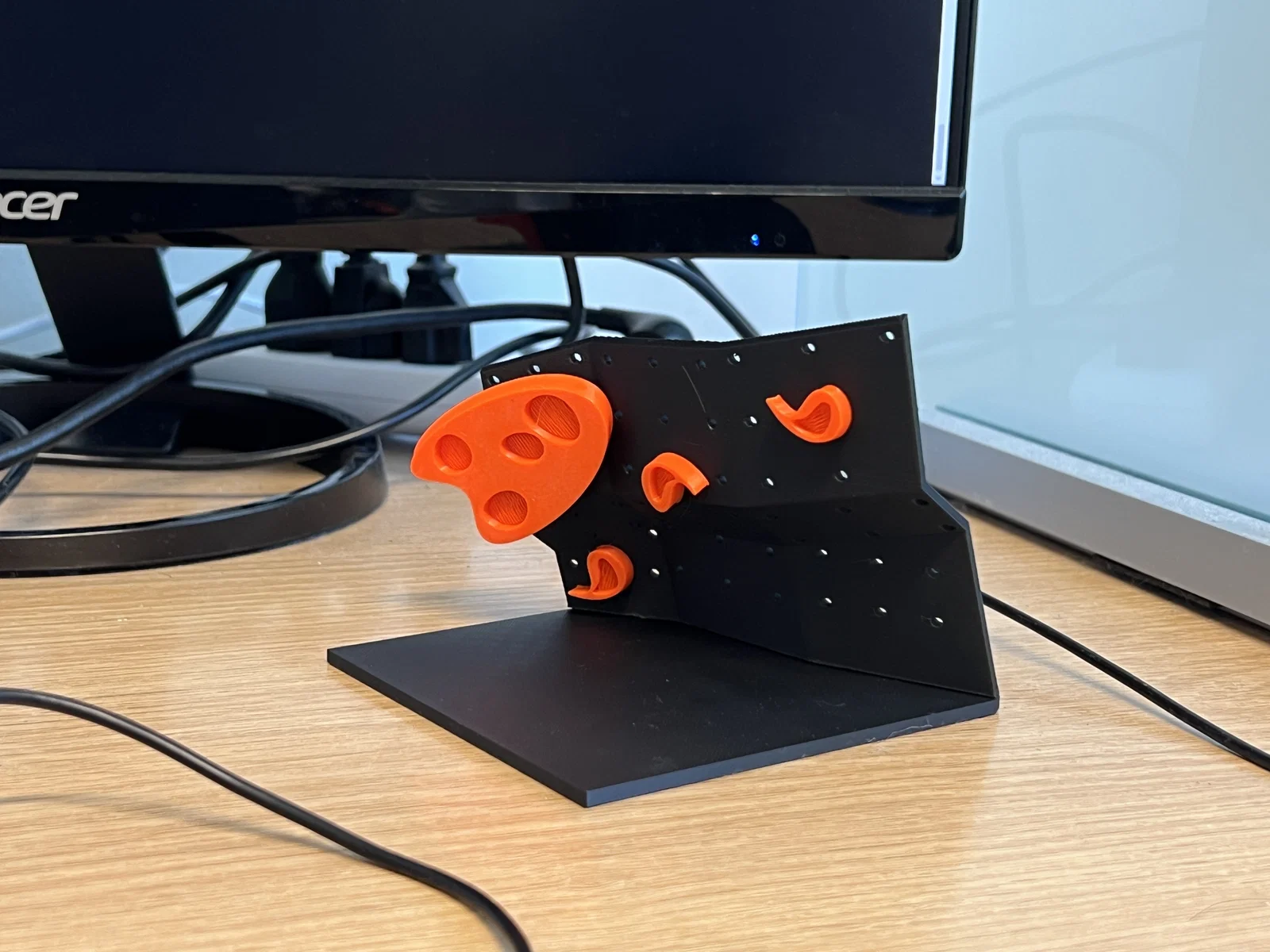 Mình làm một bức tường leo đá này cho nhìn “đã mắt”, để dân mê climbing có cái ngắm (như mình) khi đang làm việc. Mình dùng chuẩn socket 2mm (lỗ 2.3mm) nên bạn có thể tự thiết kế các “rock”/hold rồi gắn trực tiếp lên. Tấm tường dày 3mm và phần connector dày 0.85mm. Mình in bằng Bambu X1C với PLA matte đen, ra rất gọn và đẹp chỉ trong một lần in.