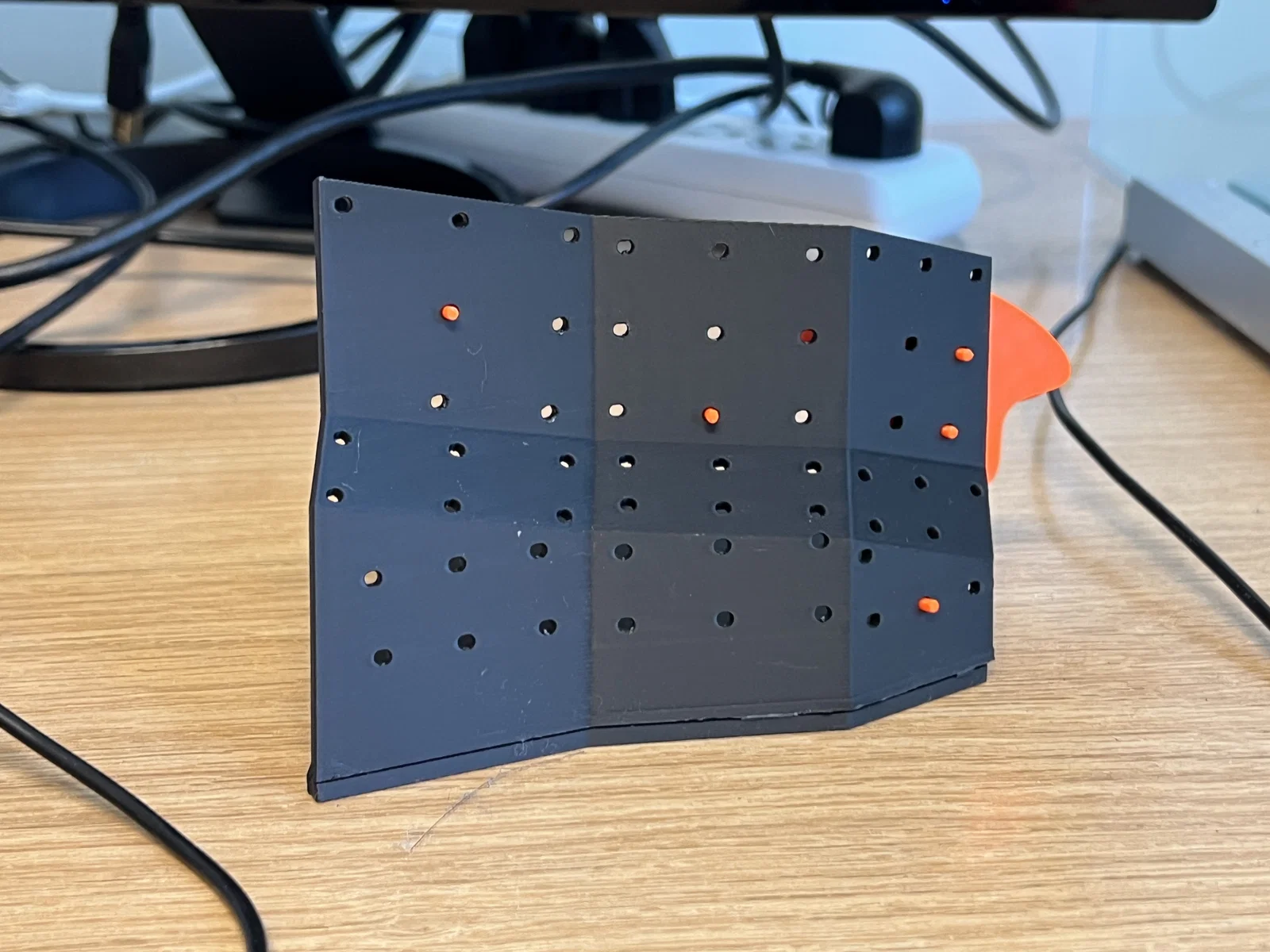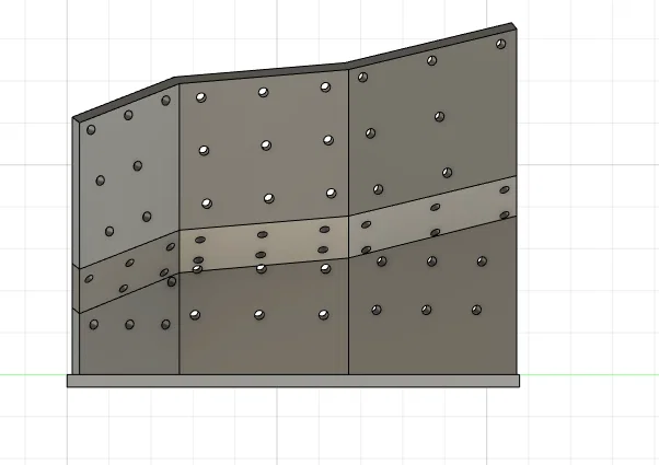 Vách leo đá/bouldering mini để trưng bày trên bàn làm việc. Thiết kế dùng socket 2mm (lỗ 2.3mm) để tự làm hold và gắn trực tiếp. Tường dày 3mm, connector 0.85mm; in đẹp với PLA.