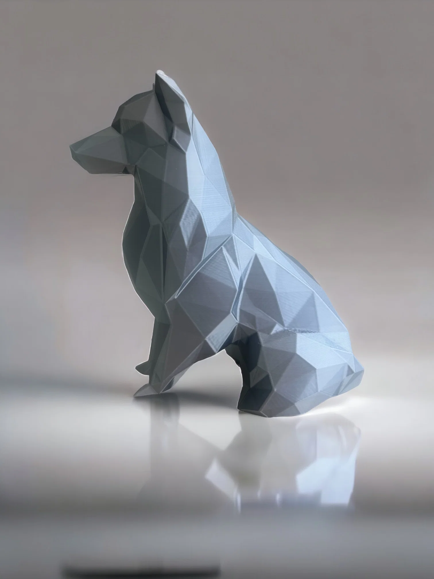 Mẫu low-poly Shetland sheepdog này là một lời tri ân đầy tình cảm dành cho Anouk of Atocha — một người bạn đồng hành được thương mến và vẫn luôn được nhớ đến. Thiết kế hình khối (geometric) tái hiện tinh thần và dáng vẻ của Anouk, còn phong cách tối giản mang lại cảm giác trang nhã, bền vững với thời gian như một kỷ vật tưởng niệm. Mẫu này rất phù hợp cho những ai muốn tôn vinh kỷ niệm về một chú chó đặc biệt theo cách độc đáo và sáng tạo.