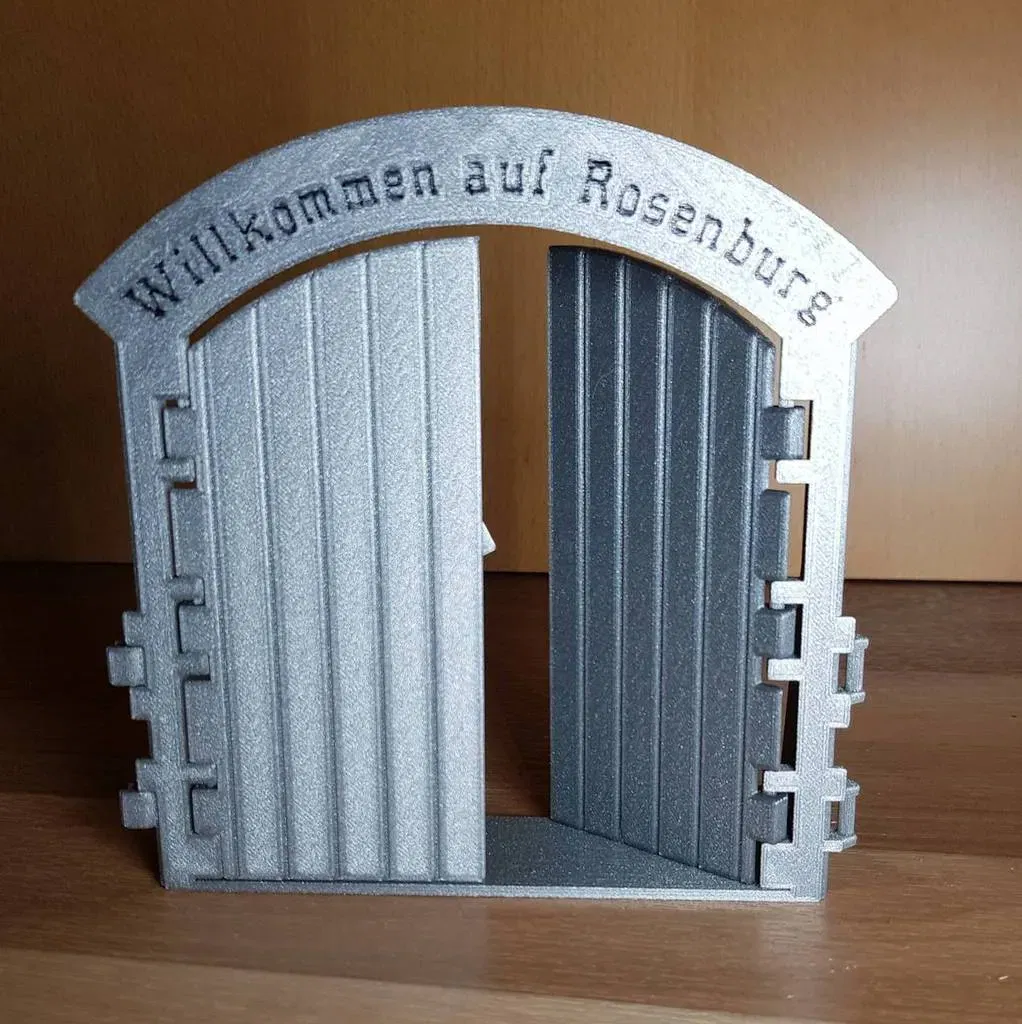 Một cổng và một cổng vào lớn cho ngựa Schleich. Tất cả các phần có thể được kết nối với các phần hàng rào. Đây là các phần hàng rào mà tôi đã thiết kế: https://www.thingiverse.com/thing:4696885 < Để đóng cổng, tôi đã cho một đoạn filament qua, làm nóng ở hai đầu và ép lại với nhau. Điều này tạo ra một "đinh tán filament". ### Hướng dẫn in Không cần hỗ trợ chiều cao lớp 0.19 mm 20% bất kỳ PLA gỗ nào Ghi chú: một số phần có hỗ trợ tích hợp (xem hình ảnh). Để có thể loại bỏ hỗ trợ đi kèm một cách dễ dàng nhất, hãy sử dụng chiều cao lớp 0.19 mm hoặc chiều cao lớp thích ứng. Tôi đã đặt góc cầu cho chính cổng là 180 độ. Trong các phần hỗ trợ, nó nên được tạo tự động ở 90 độ. (xem tệp 3mf)