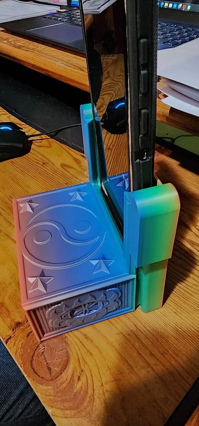 Điện thoại sẽ đặt vào khe mỏng hơn. Ảnh chụp lúc có gắn điện thoại là do đúng bạn ở trên cung cấp, nên đó là hình khi scale 111% với Samsung S22 Ultra đang dock. Gửi lời cảm ơn và shout out tới Joshua trong group Facebook 3D printing mà mình tham gia vì đã test giúp.