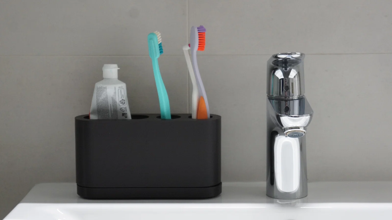 Điểm đặc biệt của thiết kế này là sự kết hợp giữa tính thẩm mỹ và công năng thực tế. Khay có sẵn các ngăn chuyên dụng cho hai bàn chải đánh răng và một vị trí riêng biệt để đặt tuýp kem đánh răng. Phần đế được thiết kế tách rời như một khay hứng nước, giúp ngăn chặn sự tích tụ của nước đọng sau khi sử dụng, từ đó hạn chế vi khuẩn và nấm mốc phát triển. Bạn có thể dễ dàng tháo rời khay hứng này để vệ sinh định kỳ, đảm bảo khu vực đặt đồ luôn sạch sẽ và khô thoáng.