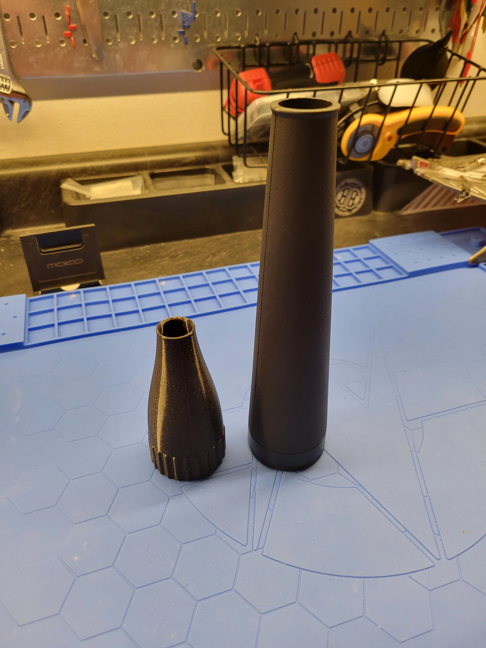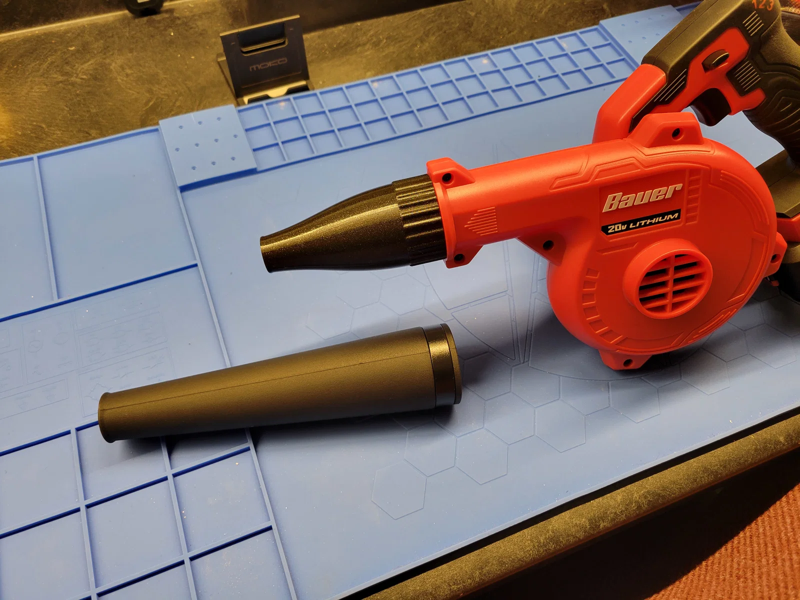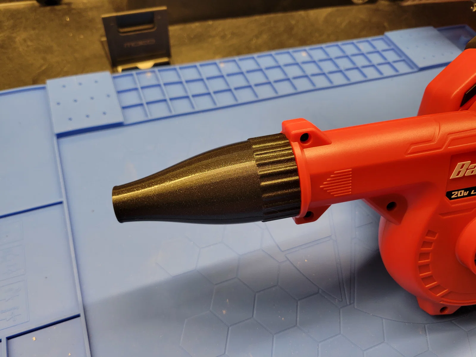 Đây là một món attachment cho Bauer 20V Blower, dài chưa tới một nửa so với bản zin. Nó dài 10cm, đường kính cửa xả 18mm. Mình in bằng PETG nhưng chắc vật liệu nào cũng chạy được. Với máy Prusa MK4 của mình thì nó ôm khít.