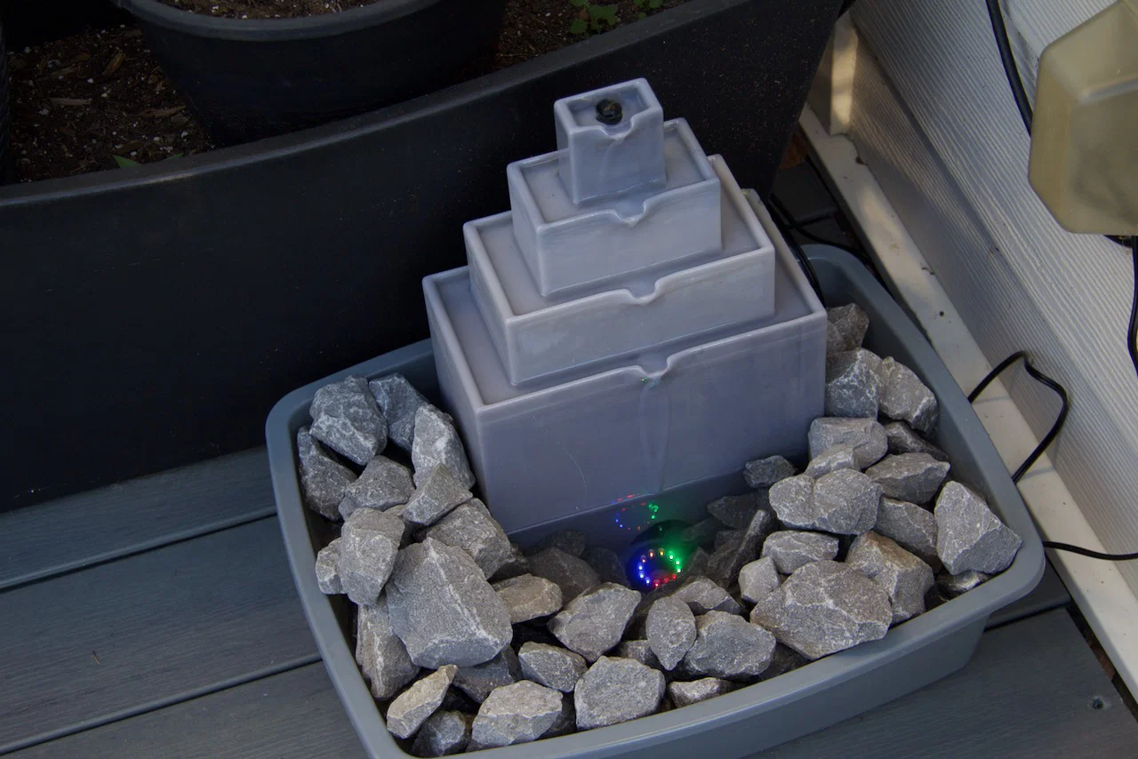 Mẫu Cube Fountain là một đài phun nước rỗng bên trong, phù hợp trang trí sân vườn/tiểu cảnh. Khuyến nghị sơn và phủ clear finish hoặc nhiều lớp epoxy resin để hạn chế nứt khi ngâm nước lâu.