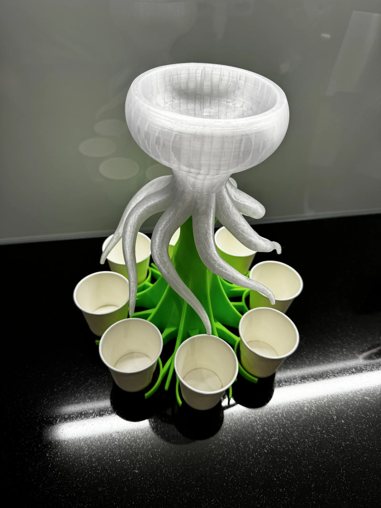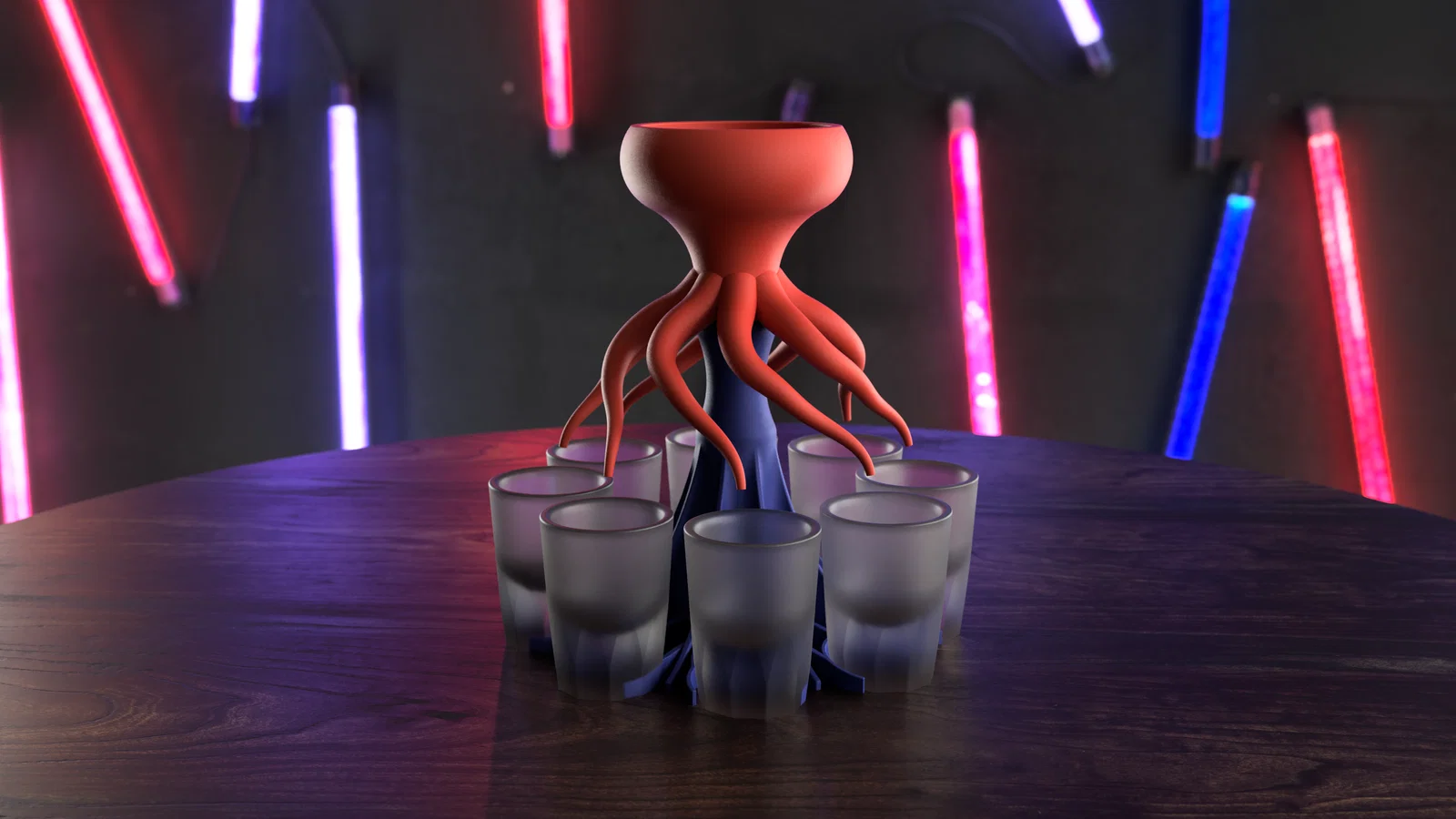 Khám phá Octashot – dụng cụ rót shot hình bạch tuộc siêu vui cho tiệc tùng. Thiết kế 2 phần ren vặn, giữ 8 ly chắc chắn và có đế cho ly đường kính 36/40/44mm. Đổ vào “đầu” là quẩy liền!