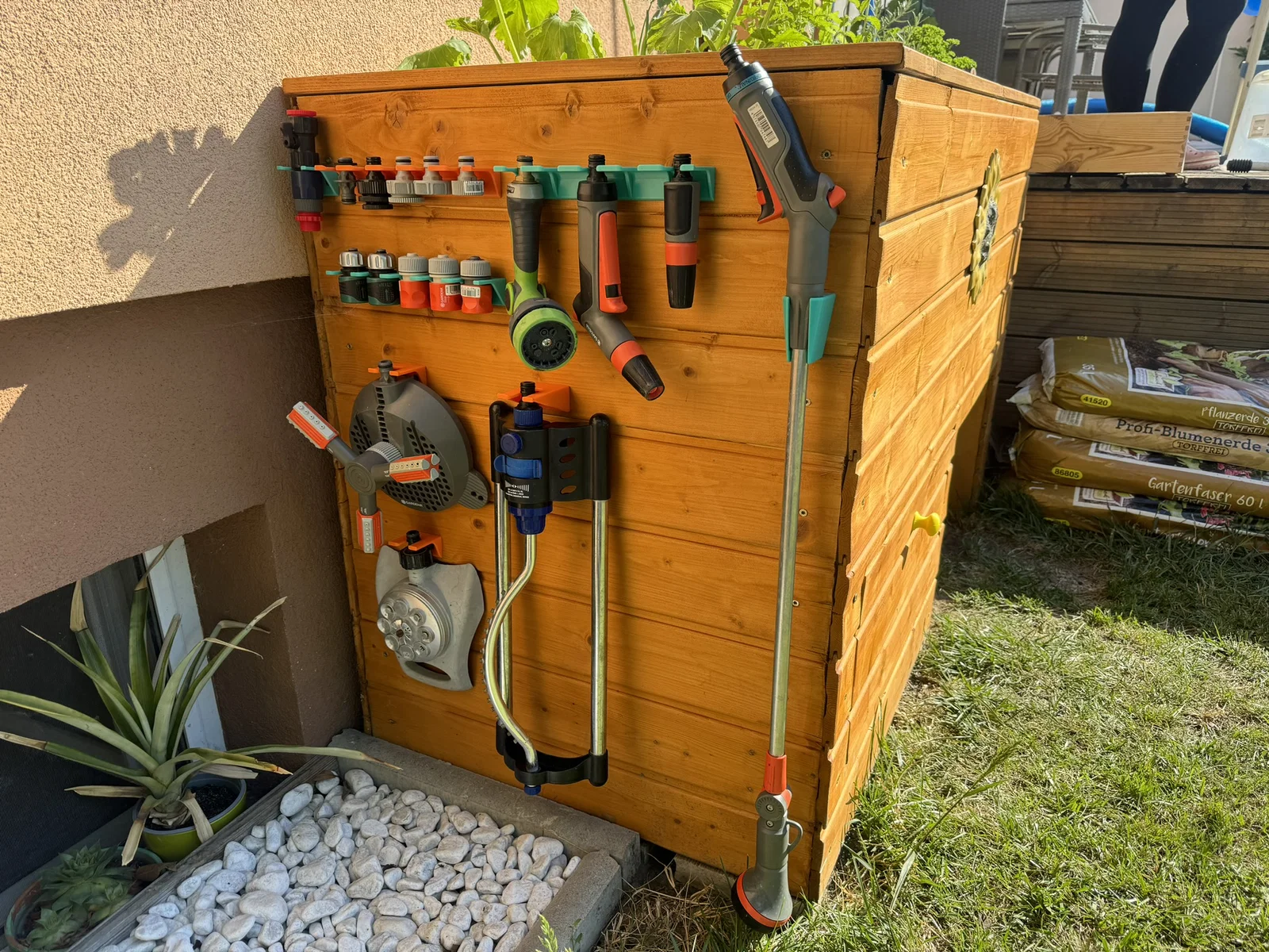 Bộ sưu tập holder cho dụng cụ và nozzle GARDENA (kèm cả loại không-GARDENA). Bracket có stiffeners nên rất cứng cáp nhưng vẫn tối ưu tiết kiệm vật liệu. Lỗ bắt vít phù hợp SPAX Countersunk Ø4mm.
